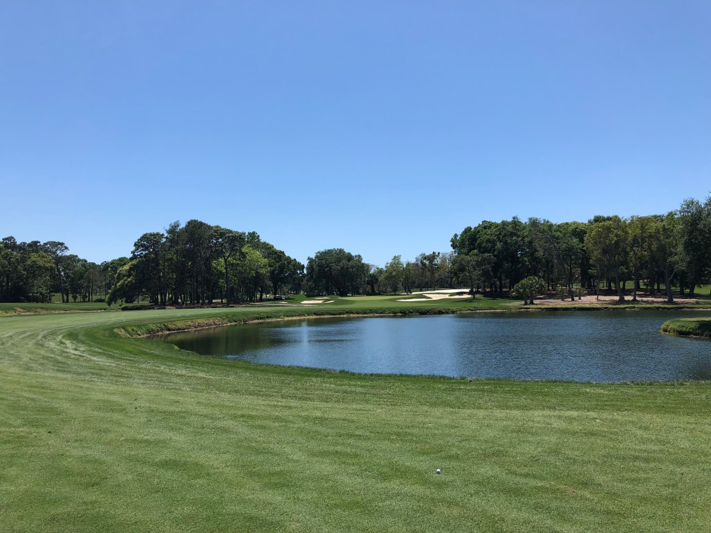 As I would par the 386-yard par four 3rd, I’m guessing we’re looking at my drive. Unlike my absolute pan of the 9th at the Island, from this pic, this is a well designed golf hole. Drive as close as possible to pond. Clear view of the hole and bunkers. Trouble in the way of greenside bunkers right in clear view.
