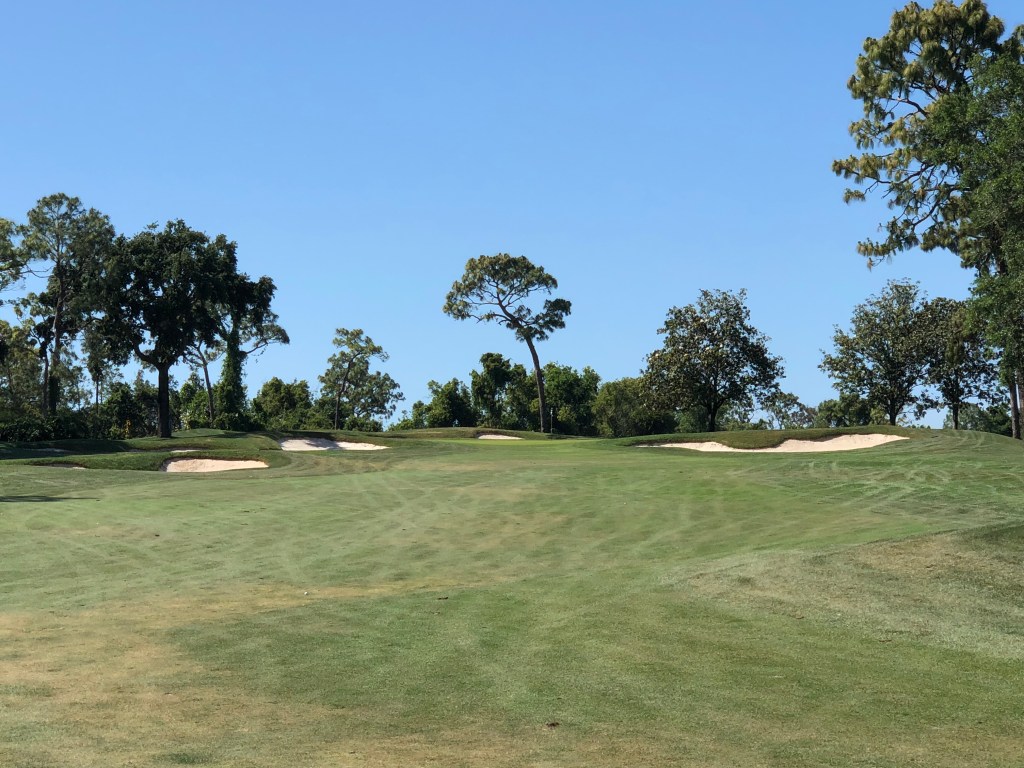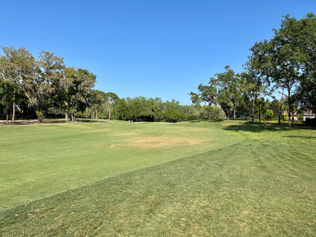 This is two, a short par five. Note the patchy spots. While I don’t want to sound hypocritical as I usually say courses shouldn’t cut down as many trees than what’s currently trendy, I think the Island could use a good tree removal program which would help the conditioning and make the course more manageable.