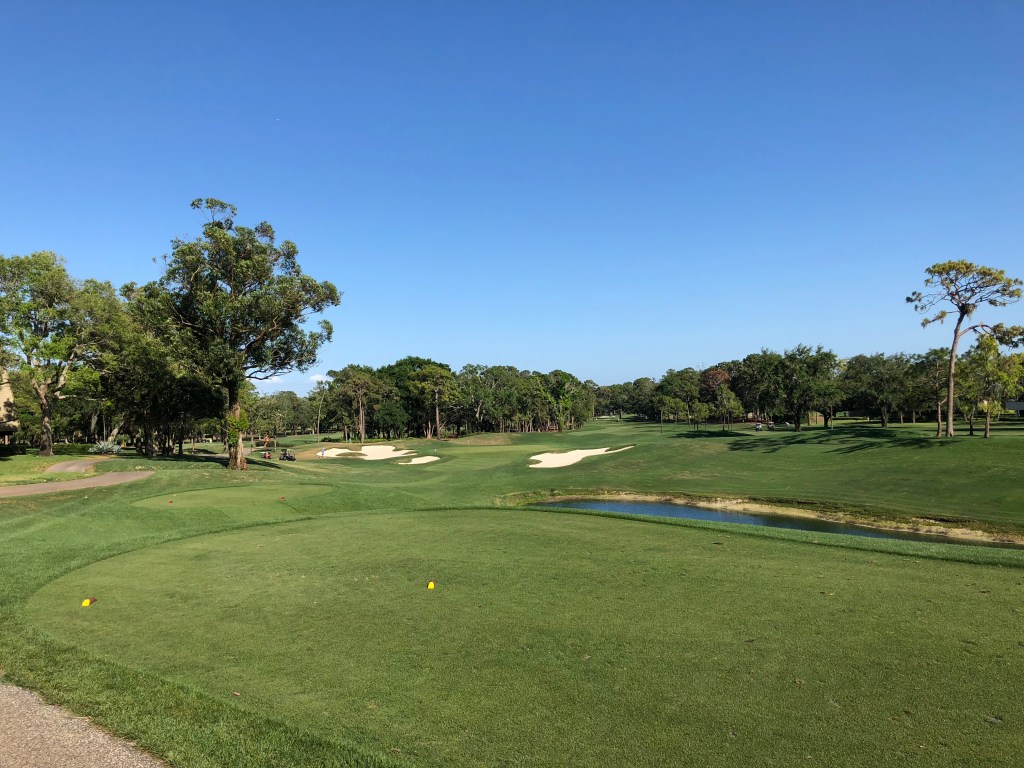 The resort features clubhouses at the Copperhead course, the Island and the main clubhouse (lobby/front desk) serves the North and South courses. Packard’s (named after the designer) is a steakhouse located in the Copperhead clubhouse. We had reservations but my buddy Don thought so little of it when he was there last that we cancelled our reservations and just bellied up to the bar at the main clubhouse for dinner. Another friend just had a girls’ trip there and she said the same thing (along with similar comments I just made above about the courses). The Island has a “modest” bar and a basement pro-shop right out of a municipal nightmare. So if you’ve made it to this little blog in the remote corner of the internet and are thinking about going to Innisbrook for your golf trip, I have but one word for you. Don’t. OK that’s two words but contracted. To the courses.