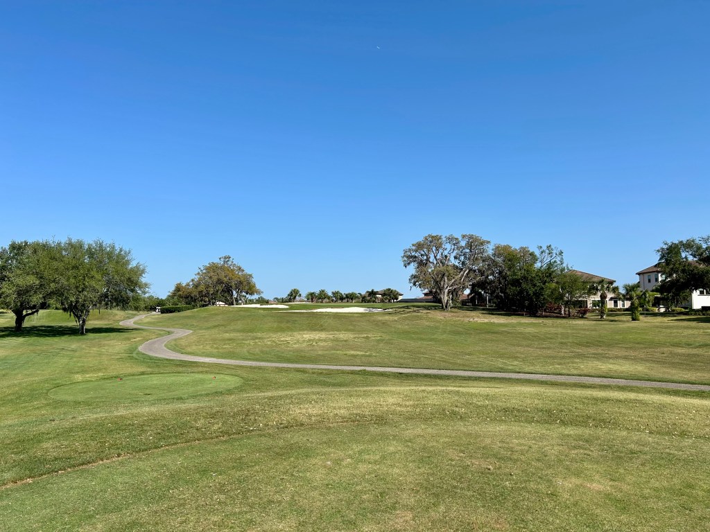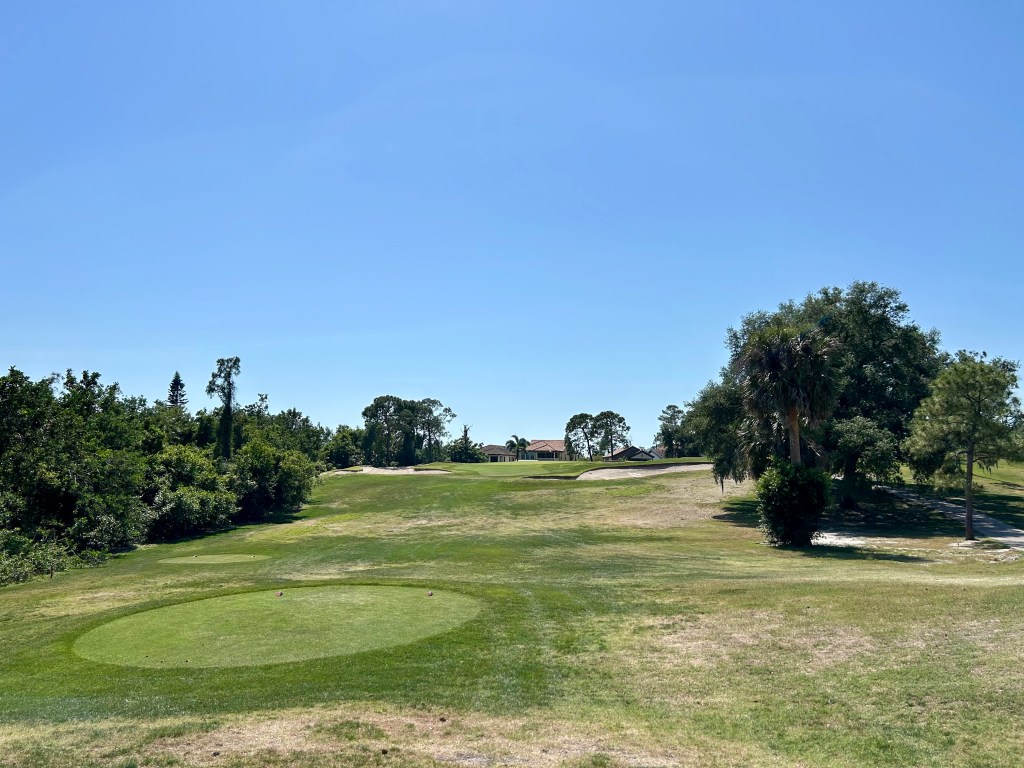 Skipped 11 – long par four and took a triple. Here is 12 (short par four 319 yards). Like 11, house-lined. This is what you would expect from Florida golf though not after dropping three Franklins. Took a bogey.
