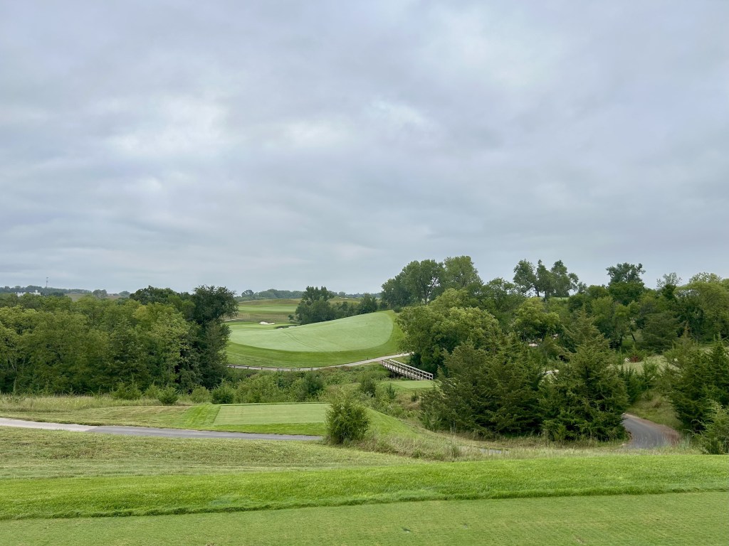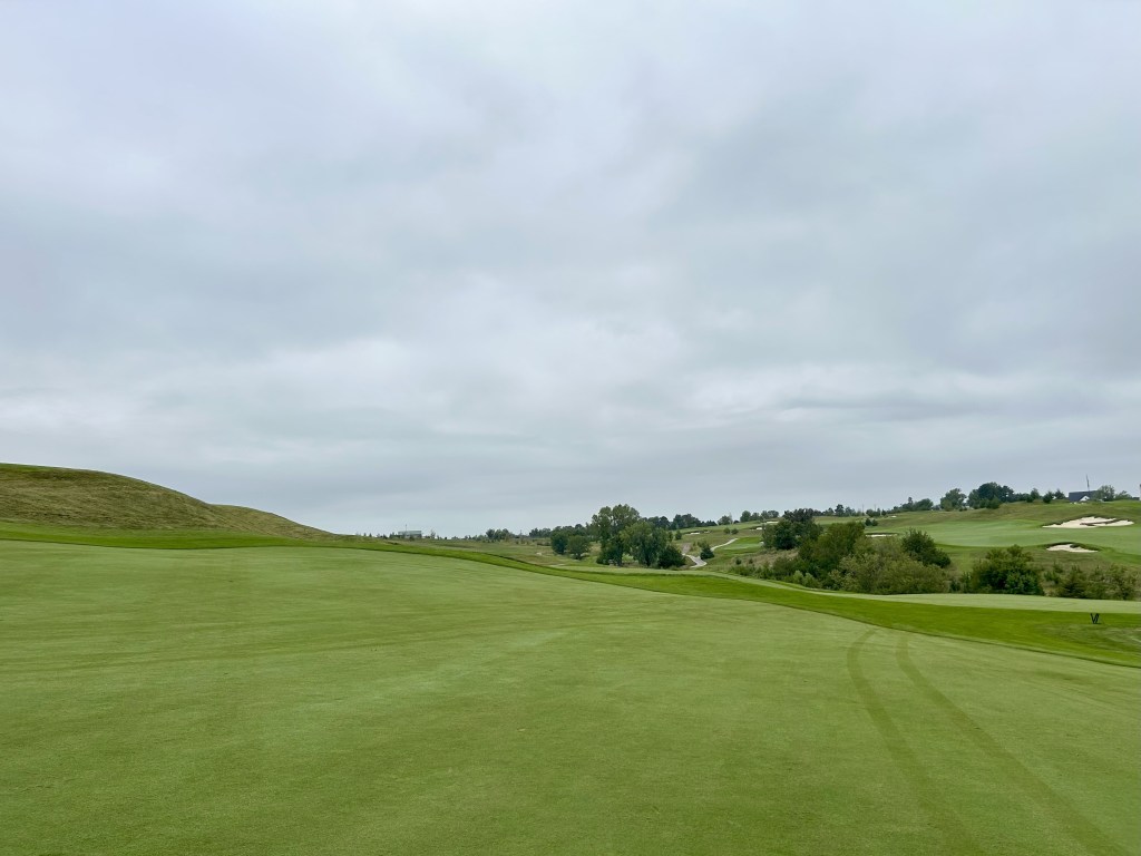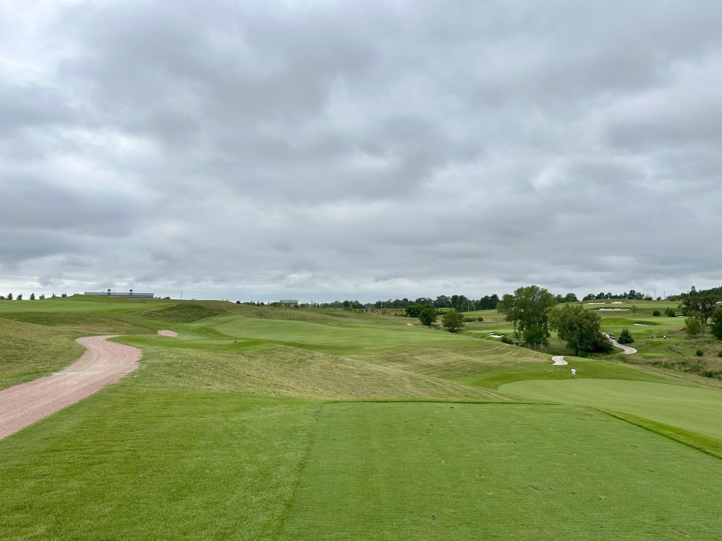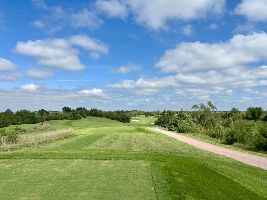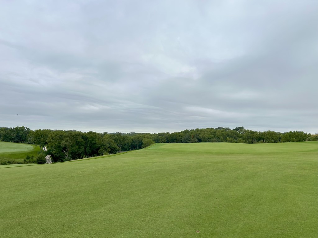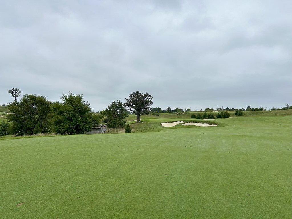This is kind of what I expected of Nebraska but 12 is still a blind drive you have to split the bunkers. It’s 423 yards so almost as long as 11 and I think this was my first three putt of the day for bogey after a great GIR.