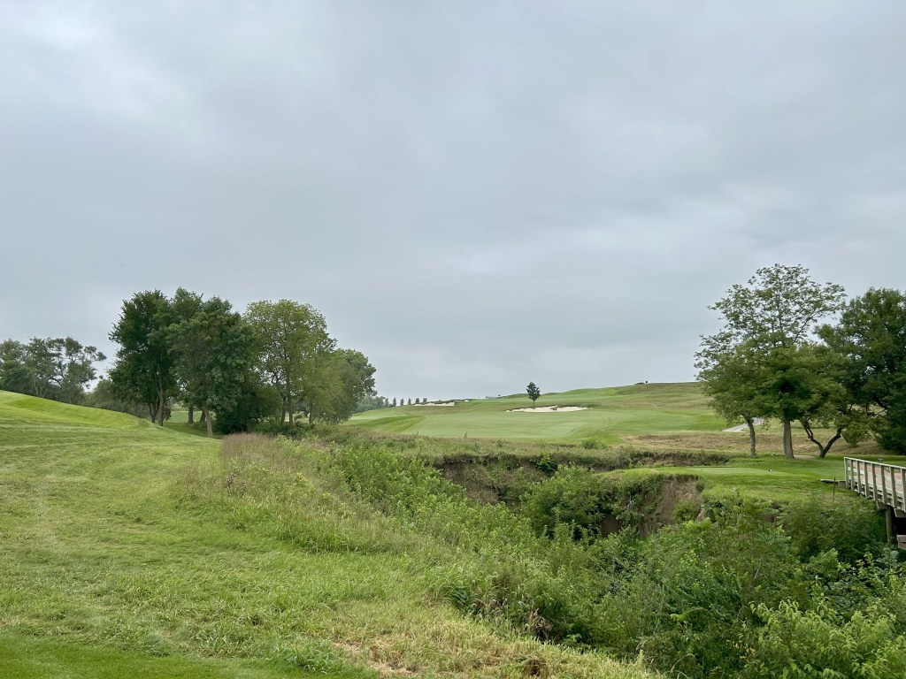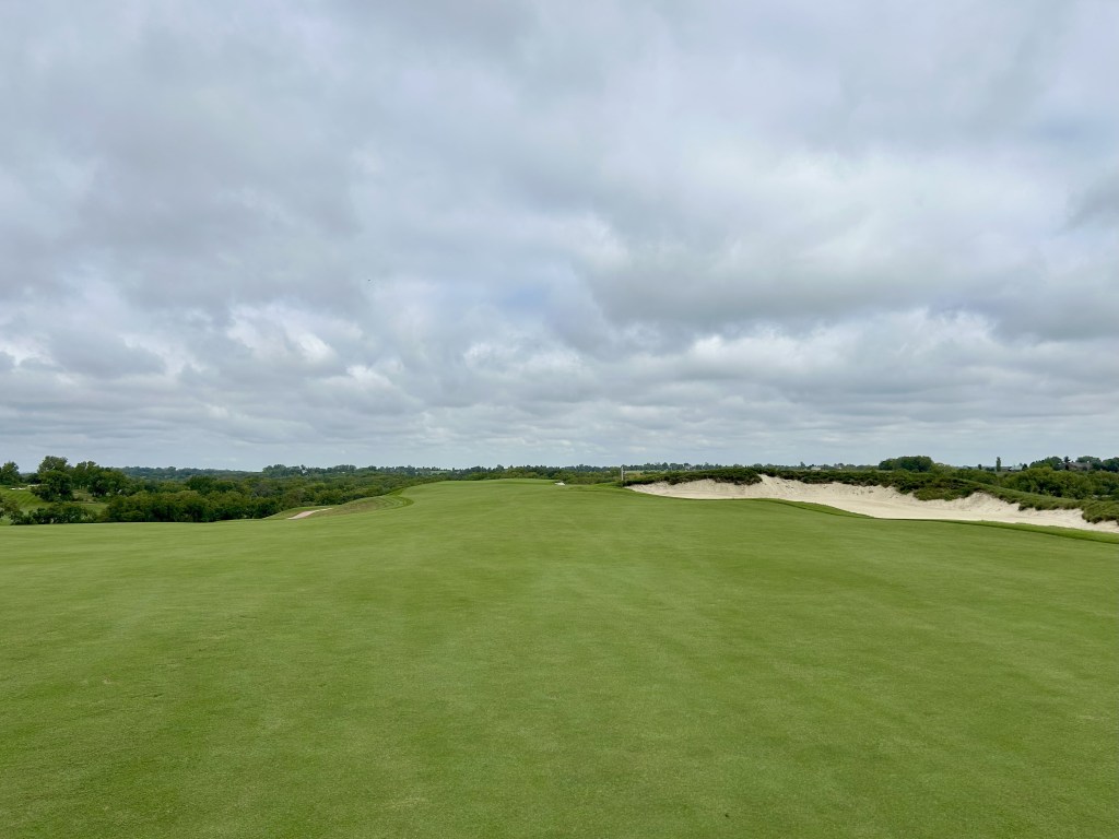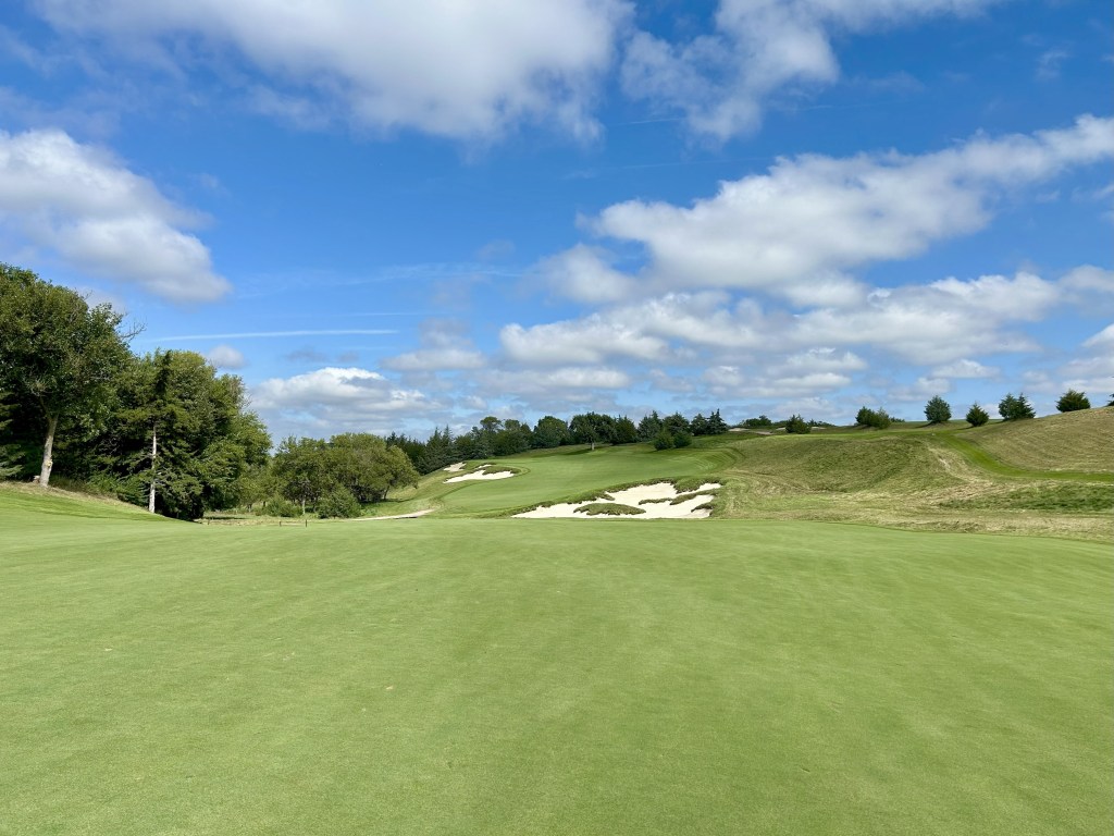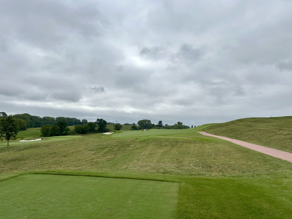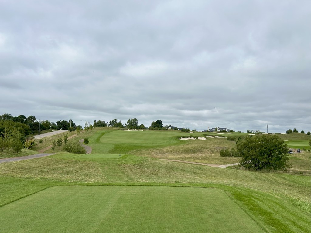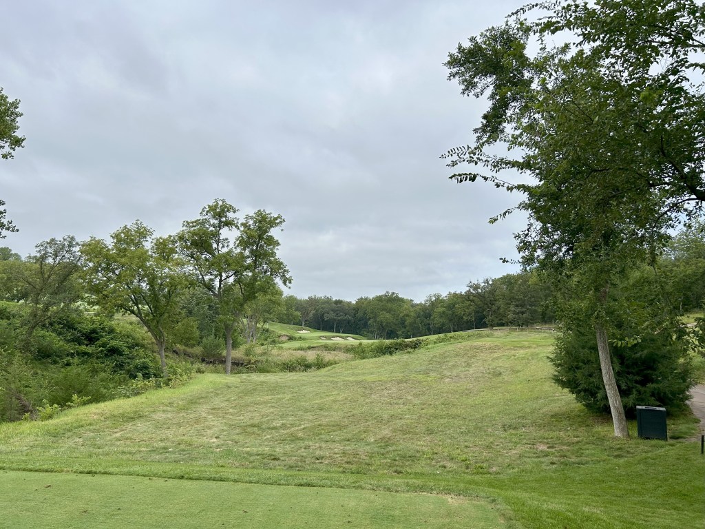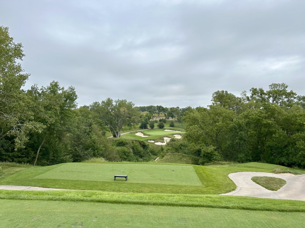 This is kind of what I expected of Nebraska but 12 is still a blind drive you have to split the bunkers. It’s 423 yards so almost as long as 11 and I think this was my first three putt of the day for bogey after a great GIR.