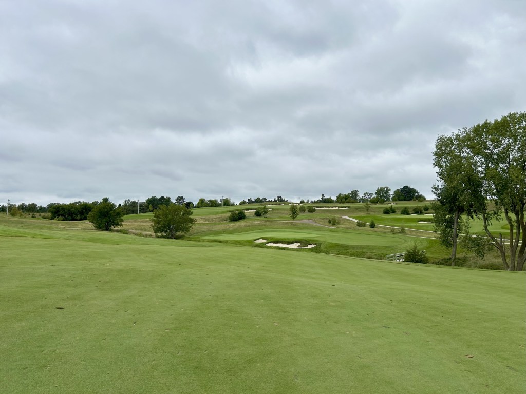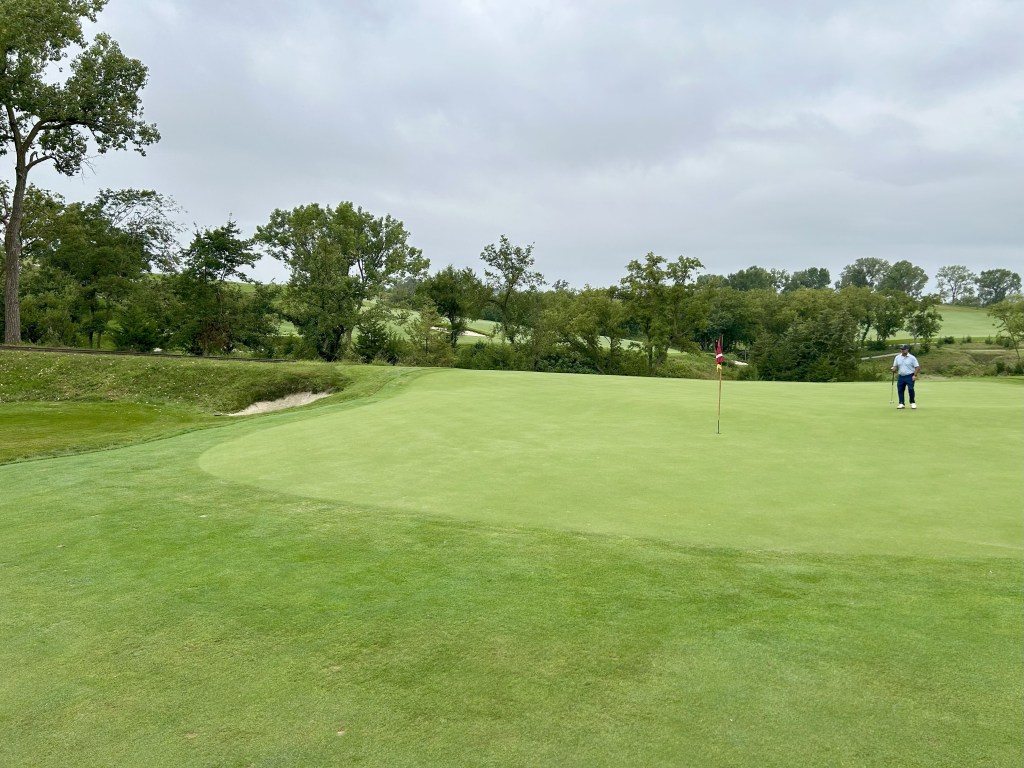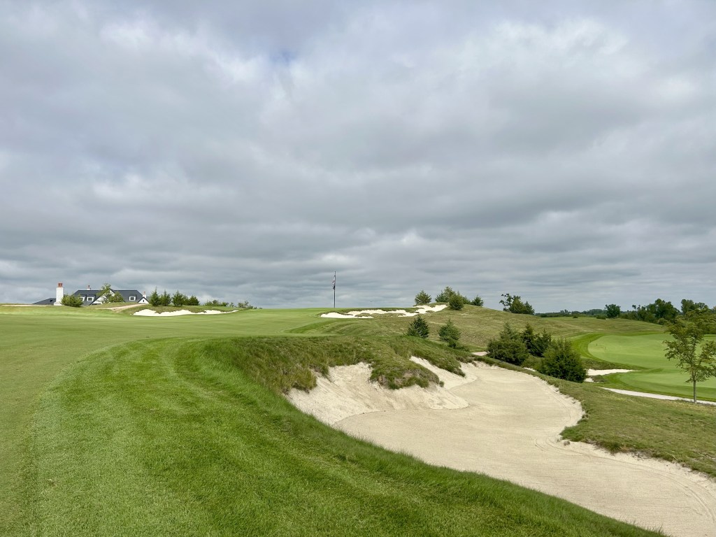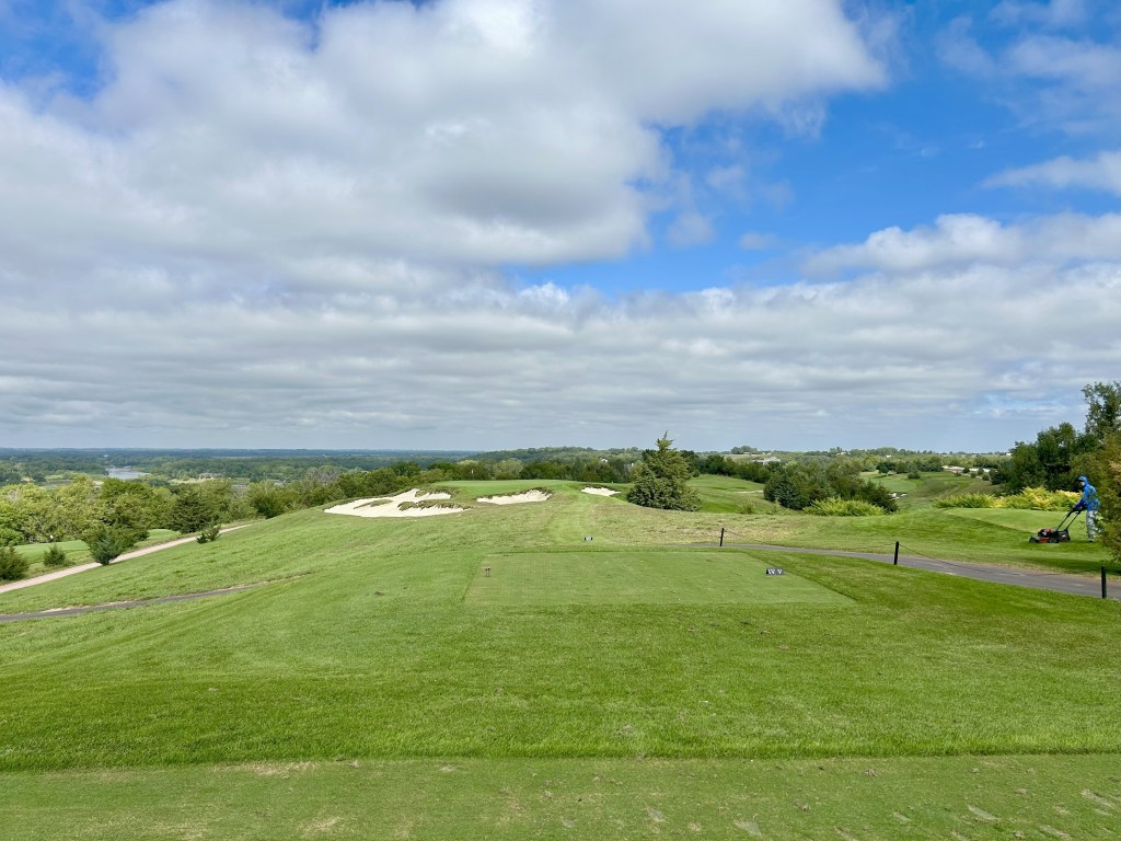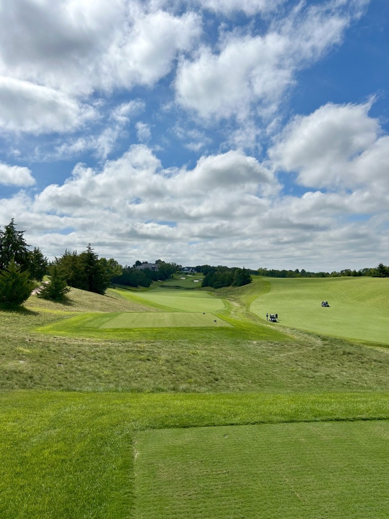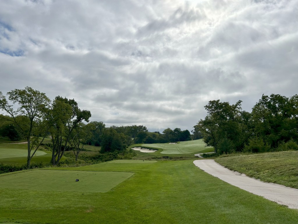 This is kind of what I expected of Nebraska but 12 is still a blind drive you have to split the bunkers. It’s 423 yards so almost as long as 11 and I think this was my first three putt of the day for bogey after a great GIR.