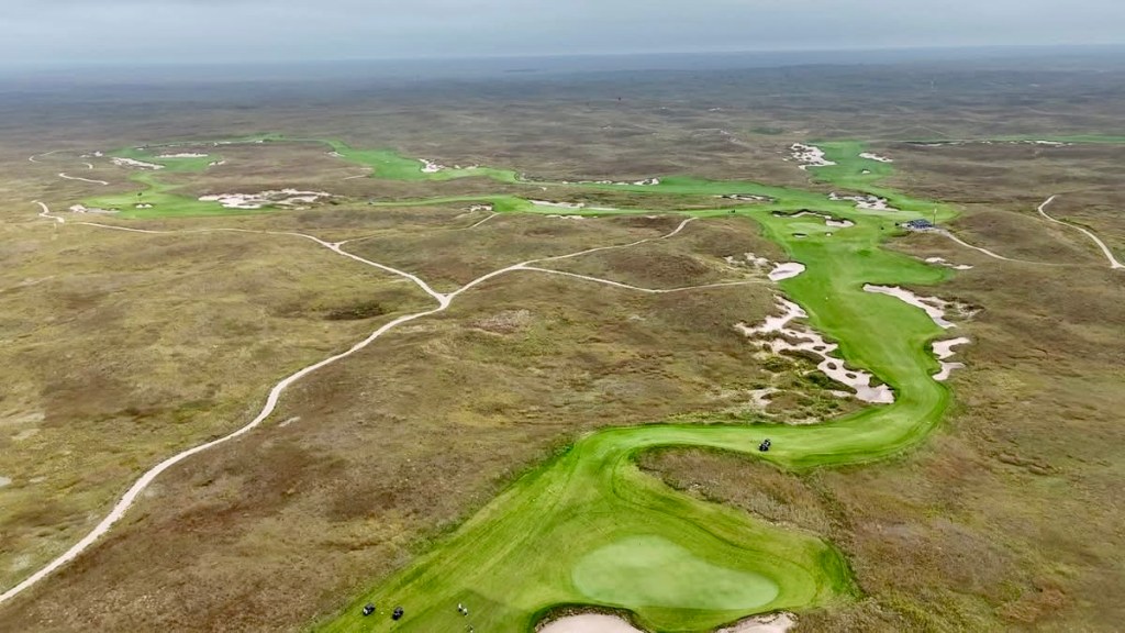 - Remoteness. You see from my buddy Brian’s drone shot above how desolate this area is. When we visited New Zealand in 2017, we went to the Hobbiton site where they filmed Lord of the Rings. The reason they said Peter Jackson picked the location was that as far as they eye could see, there were no man-made structures (electric lines, roads, et al). See below and before the clubhouse and cottages, he could’ve filmed from here without seeing a fucking hint of modern humanity.