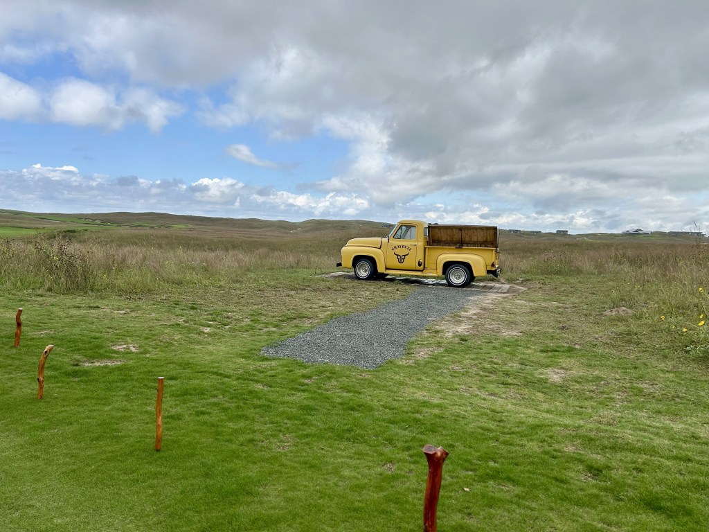 The vintage yellow pick-up truck on the 14th tee is not just a relic for visual sake the bed also is a Yeti cooler to indulge in a final few beers, seltzers or other drinks before making the final turn.
