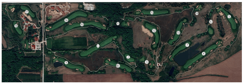 August 2025 – Played ArborLinks as part of our three-course Nebraska trip. This was the first Dormie Club I stayed at (though not the first I played) and will go into that whole experience in a bit. The shot above is from my buddy Brian who brought his drone out with him and this is the 18th green with the drive-through silo and clubhouse in the background. Great clubhouse and amenities here that push ArborLinks comfortably into my top 200.