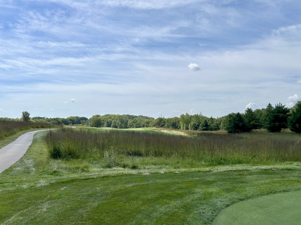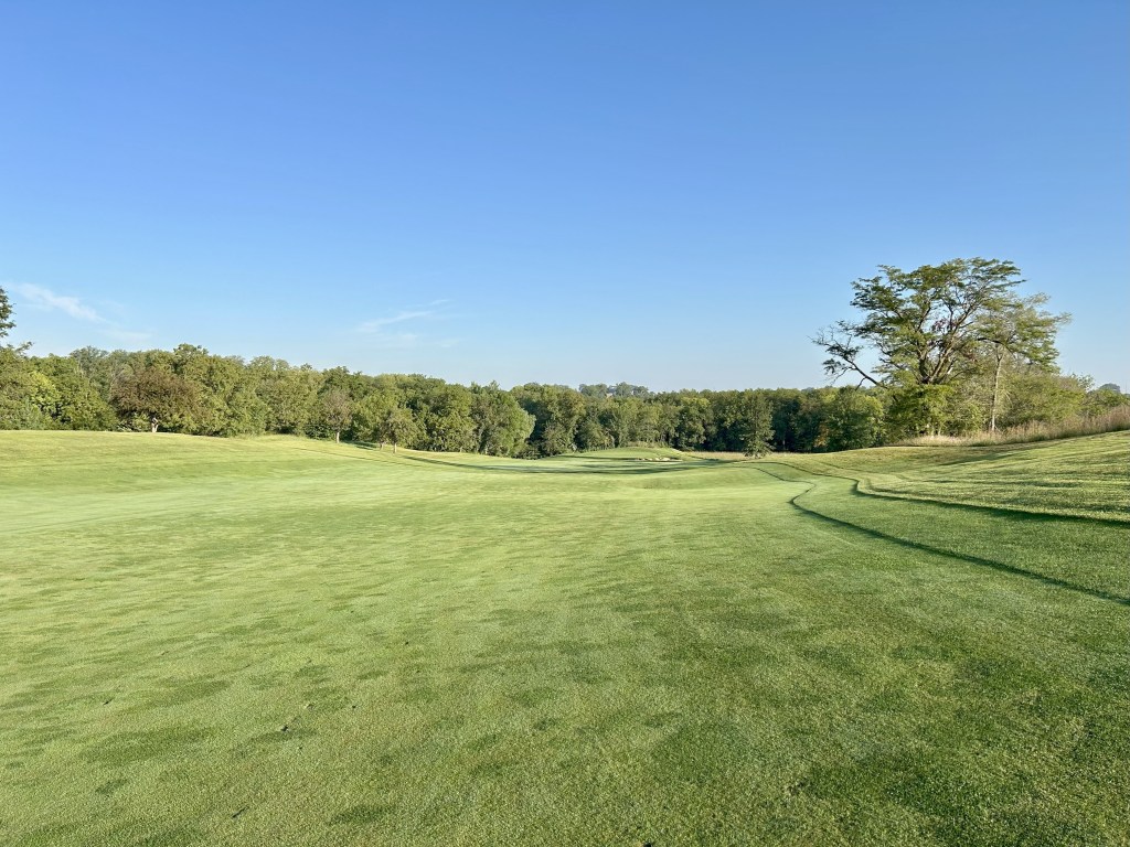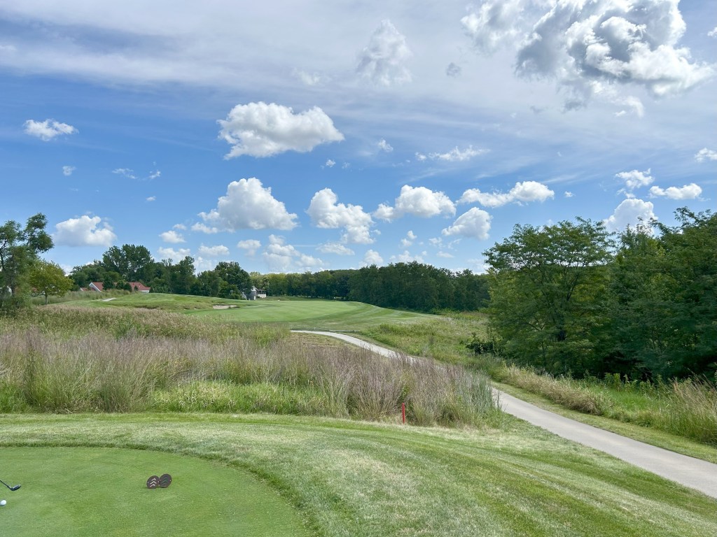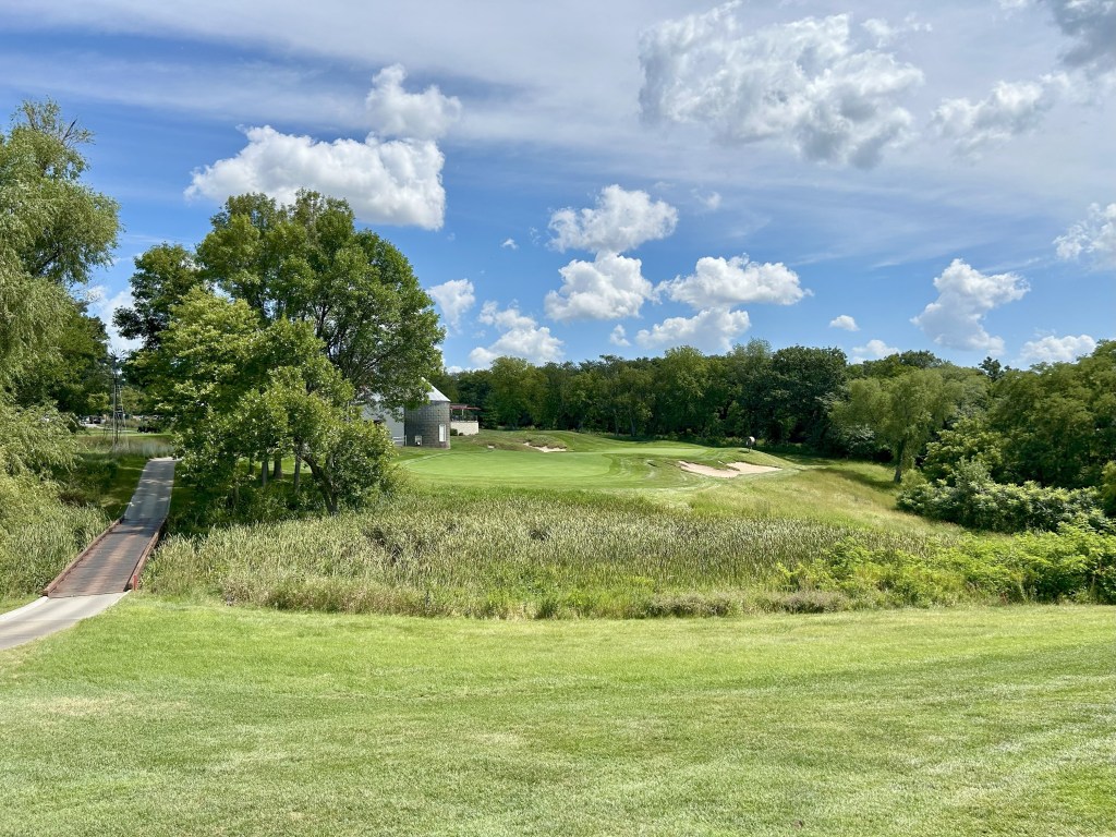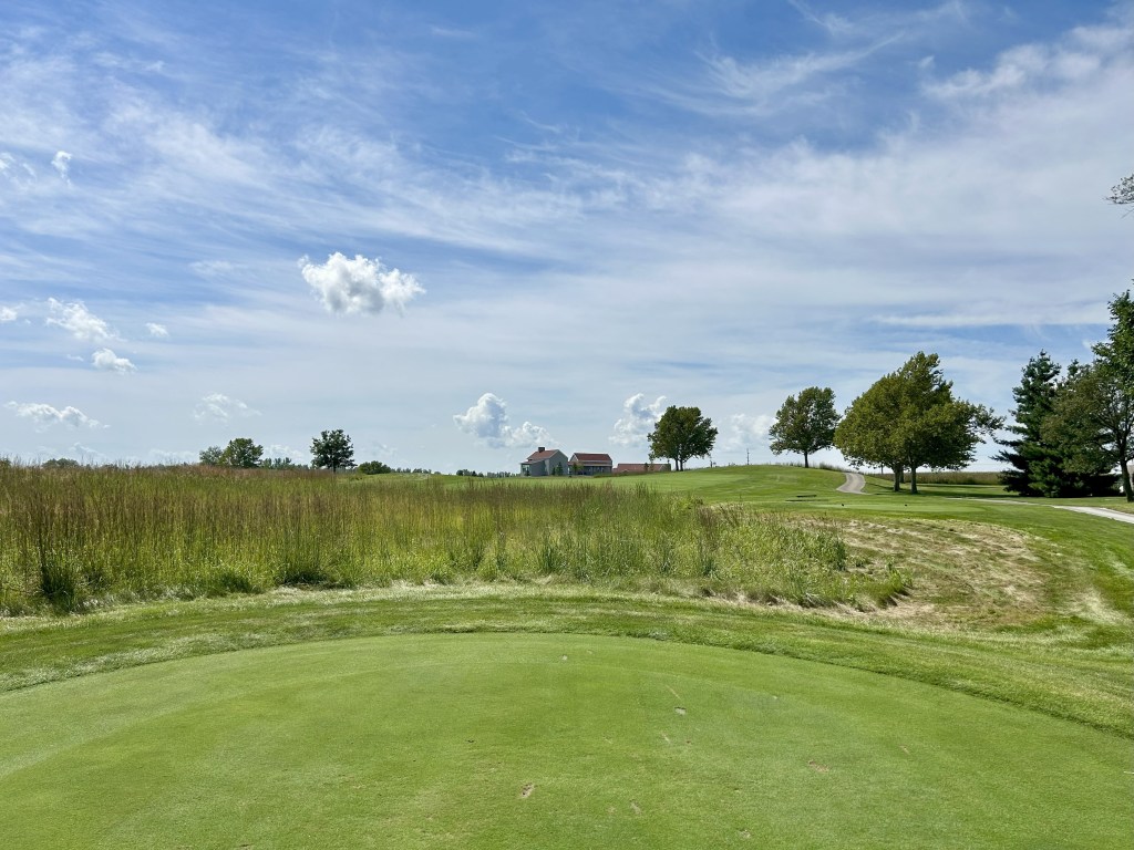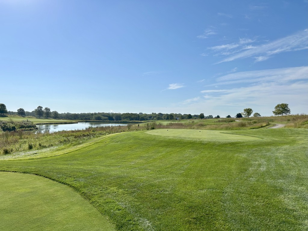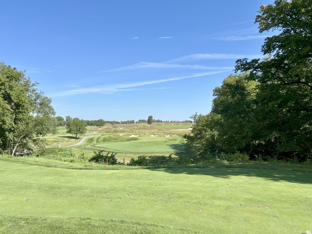 My flubbed shot was just up ahead of where I took this pic. That’s the silo to the left and the edge of the clubhouse beyond that. After the flub I would put my wedge within five feet and though I was draining those putts for the most part all day, I missed it here for a five net four and we would win the back handily. My two birdies net eagles and net birdie on the #1 handicap and par net birdie all would win me skins so despite a crap front nine, walked away from the round cash positive.