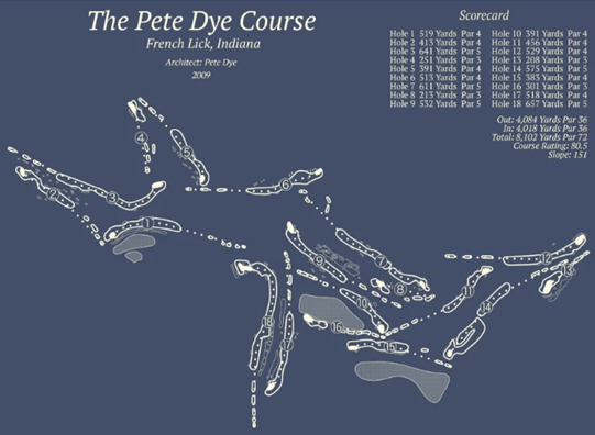 Golf Club Atlas does a great job reviewing Dye French Lick and if you want a well-studied golf architecture nerd’s review, I suggest you go there. If you want nonsense from a Miller Lite-guzzling, bogey golfer, then I got a lot of that for you here.
