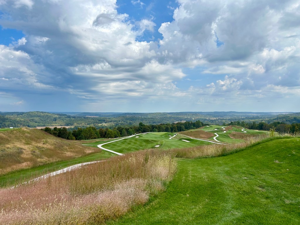 October 2025 – The Pete Dye Course at French Lick Resort was the last course I played on our Hoosier State golf tour. The rest of the guys would play the Ross Course here too (and gave it so-so reviews) but I had to jet home. Of the courses we played though, most if not all of the guys ranked this at the top – ahead of even Victoria National. Golf Digest ranks it at 129. This and Victoria National are very close IMO but the top 100 love probably pushes VN ahead for me. Regardless, Dye French Lick is a must-play and possesses all of the ingredients I need in a top ranked club: Beautiful views unbesmirched by houses or commercial blight, great design that is challenging yet fair, top notch conditioning, awesome clubhouse and access to booze, tournament history (though not PGA in this case but they were prepping for a Korn Ferry event a few days after we played it), high praise from design aficionados (design integrity), etc.