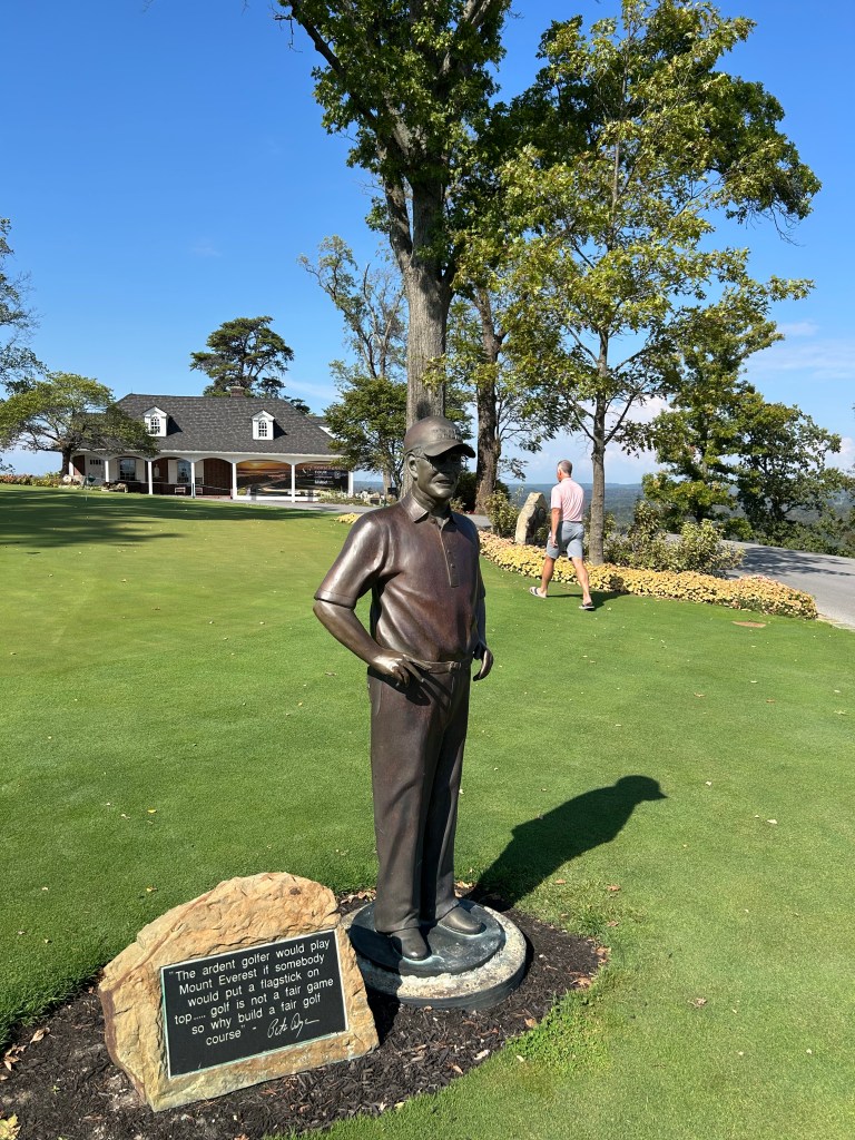 The Pete Dye course can be stretched out to over 8,100 yards for tournament play. Pete has guaranteed that the course will not be made obsolete in our lifetimes and beyond. We played the whites which measure about 6,200 yards and the course is tough but playable for the bogey golfer from that distance (130 slope). Also if you read the Golf Club Atlas piece above, you see what Pete did to ensure a walkable course but one that took full advantage of the elevation changes and the beautiful views. This is really a great course that I have no nitpicks on except the cost. We did the stay-and-play option (which you need to do to gain access to the course) but at the end of the day, this was a $500 +/- golf round. That is pricey. You did get a nice tee gift (engraved bag tag, locally distilled whiskey and cigar).