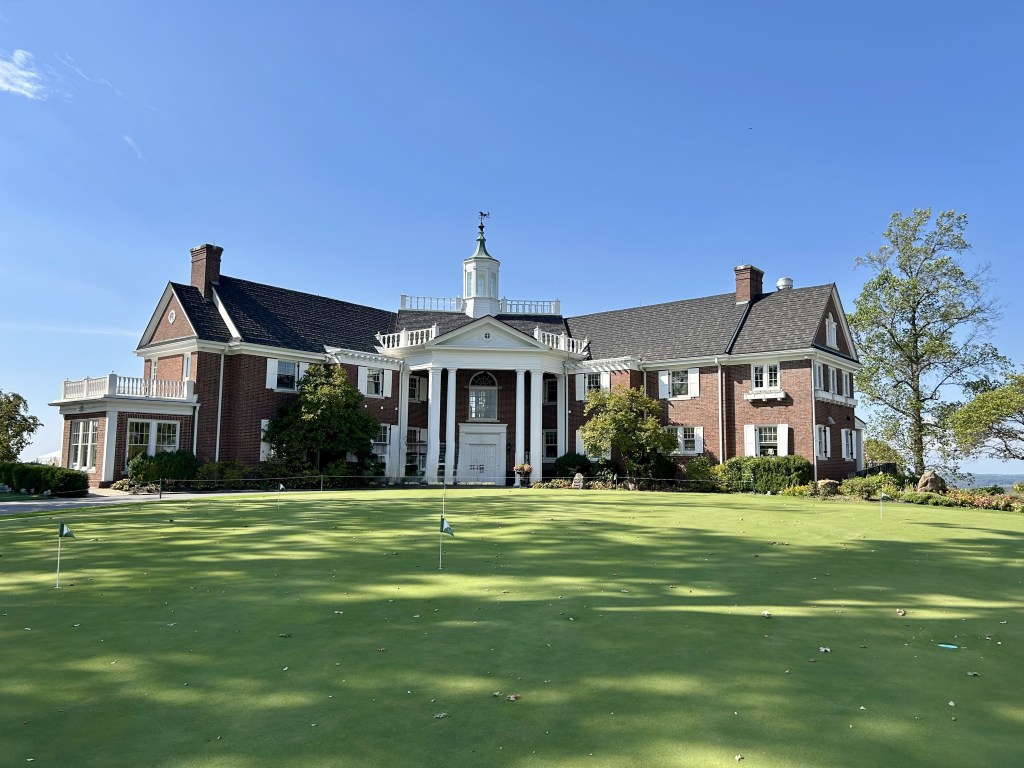 A great course starts with a great clubhouse and what a great clubhouse. The pro shop is in an unseen building to the right of Thomas Taggert’s mansion shown here which serves as the main clubhouse and bar/restaurant. There is a private dining experience you can book here with enough notice,. We didn’t enjoy such advanced notice and hence didn’t dine here. However the clubhouse and pro shop are a ways away from the first tee and where 18 ends. There are some other facilities there but not sure if they were set up for the Korn Ferry or are permanent structures and we didn’t go in so not sure what function they serve. The bar area isn’t big but the staff was great and they had all the drinks – including Miller Lites – that we like.