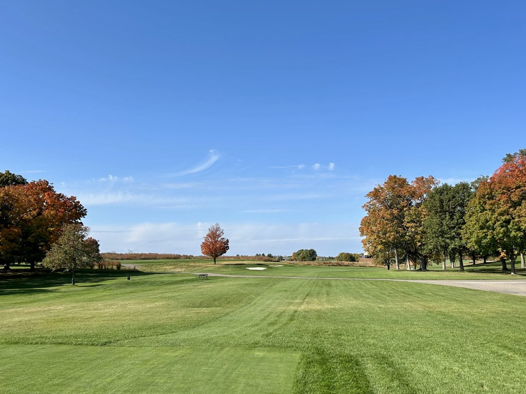 Hole 14: 310 yards-par four-#16 handicap: I’d miss the par three 13th (166 yards) with water in play for anything left. Then the half way house. Another Miller Lite please. Then the easiest par four on the course and one of the most beautiful Fall photos you will ever see.