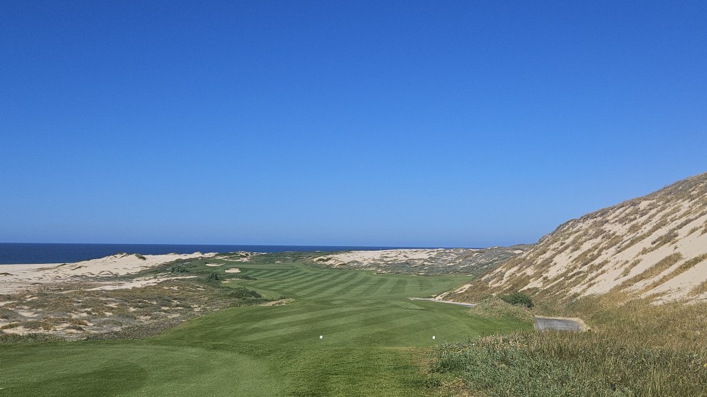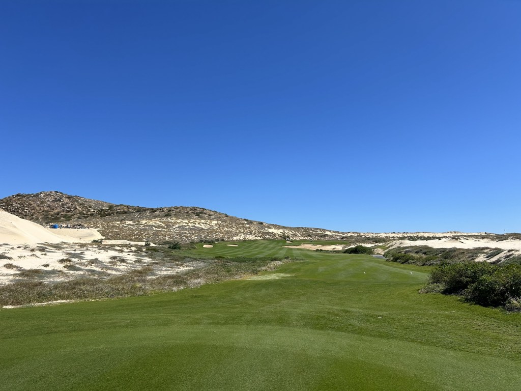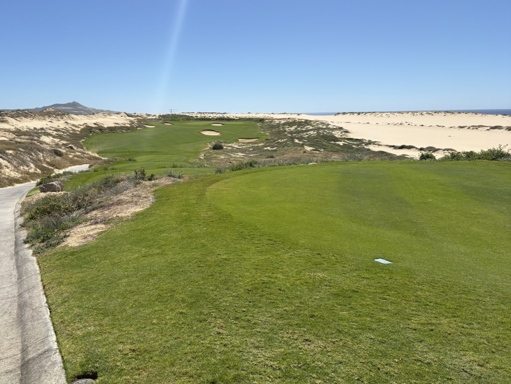 Hole 4 Humpback Whale (313 yards/#13 handicap/par four): You’d think they would have a humpback green on this but no. Short uphill par four with prevailing wind at your back. Like Diamante, if you go into the dunes, it is brutal to advance the ball out with how soft the sand is. I know I was there in the right and barely advanced the ball for one of the rounds.