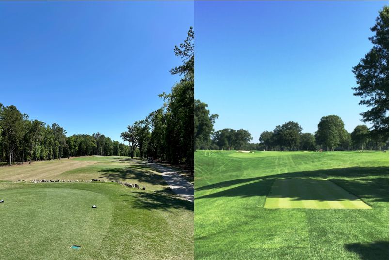 April 2025 – Golden Ocala Golf and Equestrian Club – as the name suggests – is a Ron Garl-designed private club in the beautiful Ocala horse country. The club features 27 holes (for now), 11 of which are replicas of some of golf’s most iconic holes. The replicas are really spot on as you see from the 11th above (obviously a replica of Augusta’s famed 12th hole). We played through my buddy Rob’s Epic account with our host Tyler (awesome guy, awesome golfer) and buddy Scott.