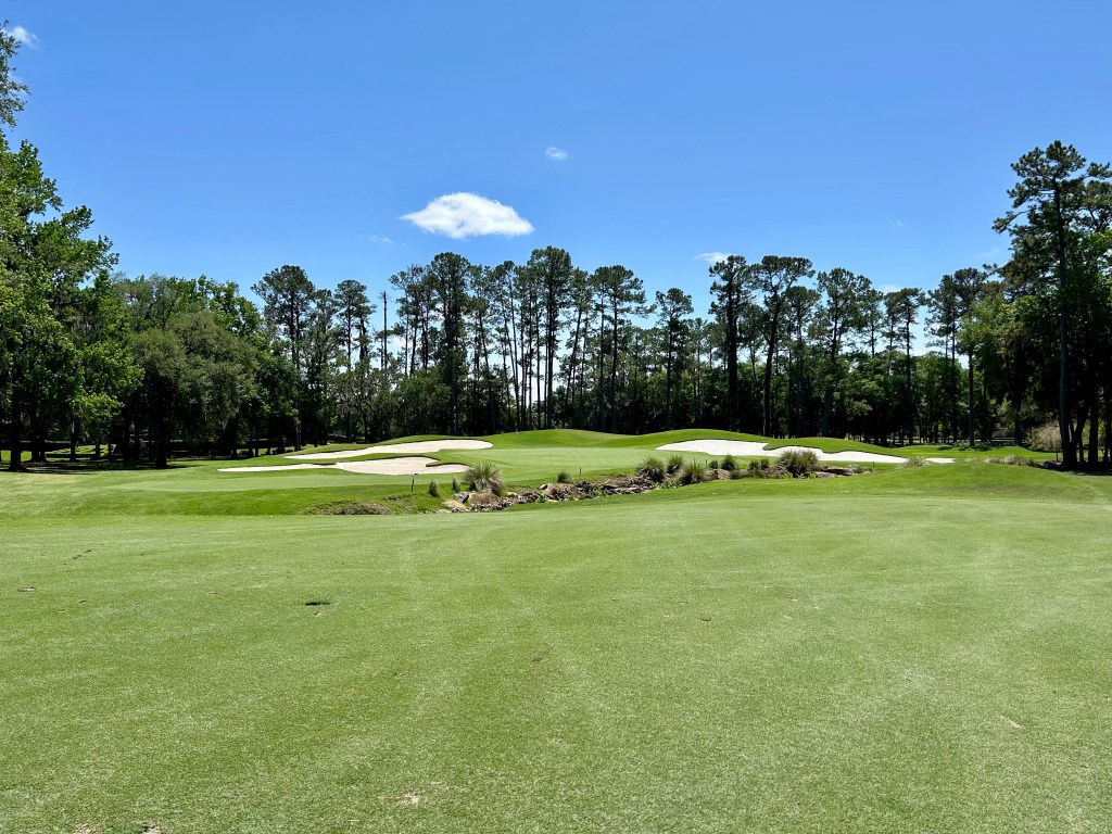 I talk about replica courses in my Old MacDonald review. There I discuss the two types of replica courses: the first are odes to architects like Old MacDonald and Arcadia South that are usually highly regarded and ranked and the second are direct replica courses like the Tour 18 courses, the Golden Bear courses and Royal Links (replica holes of the British Open courses in Vegas) which are usually panned and considered gimmicky. While Golden Ocala’s holes are direct replica holes, the course still gets some state ranking love from GD. Here’s why: Golden Ocala is different in that it is a private club and weaves replica holes into the routing with originals.