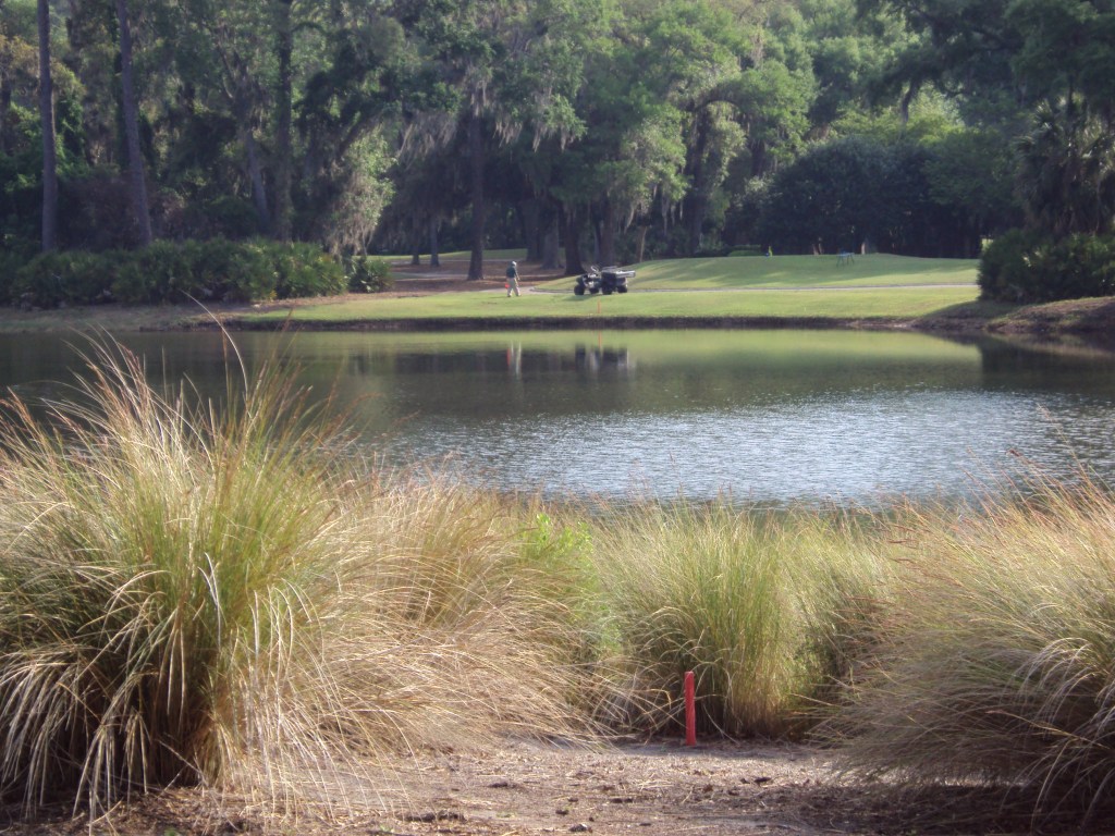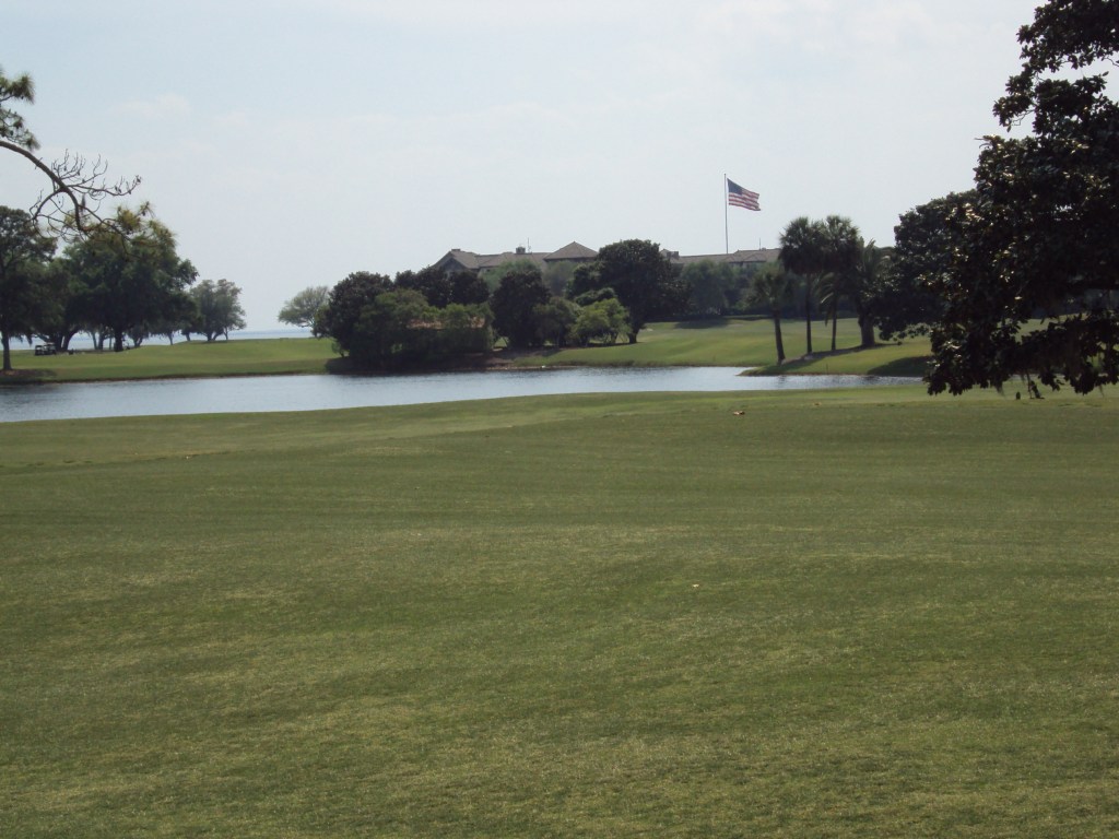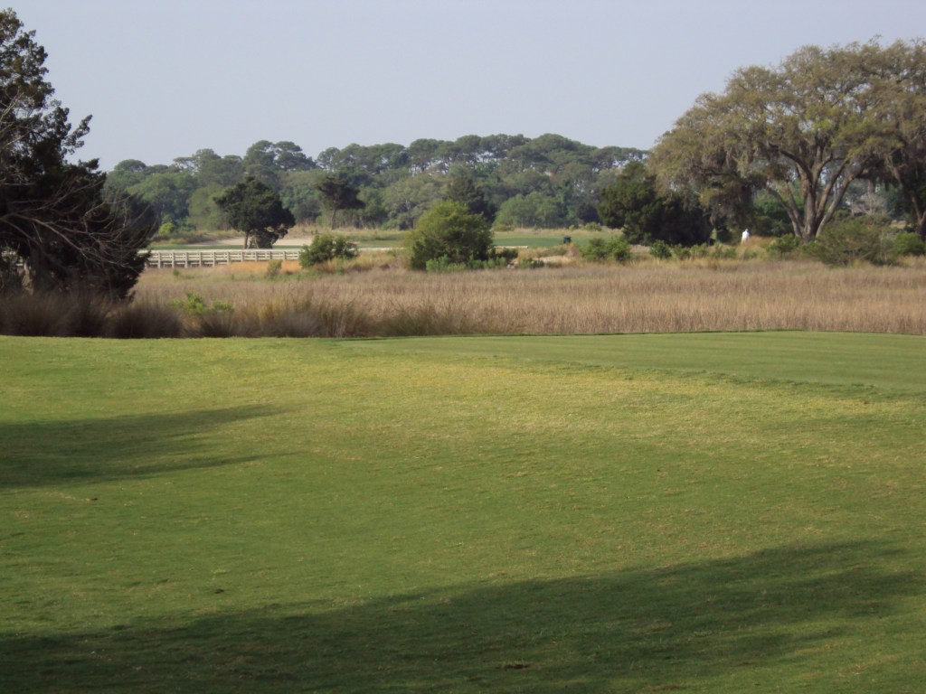 So the Seaside is not really a seaside course but more of a marsh-side course. You can catch glimpses of the ocean from several holes and the marshes mean you get horizon views throughout. The way the course is designed around and through the marsh is what makes it stand out. Four is a cape hole green left where you need to chomp off as much marsh as you can but don’t hook. Five is a cape hole green right, same as above but don’t slice. Par threes are awesome. Thirteen is an ocean front hole and the signature hole of the course. Both the Plantation and Seaside courses radiate out from the Lodge which is one of the two accommodation facilities along with the Cloister – where we stayed in 2010 for a retreat thing.