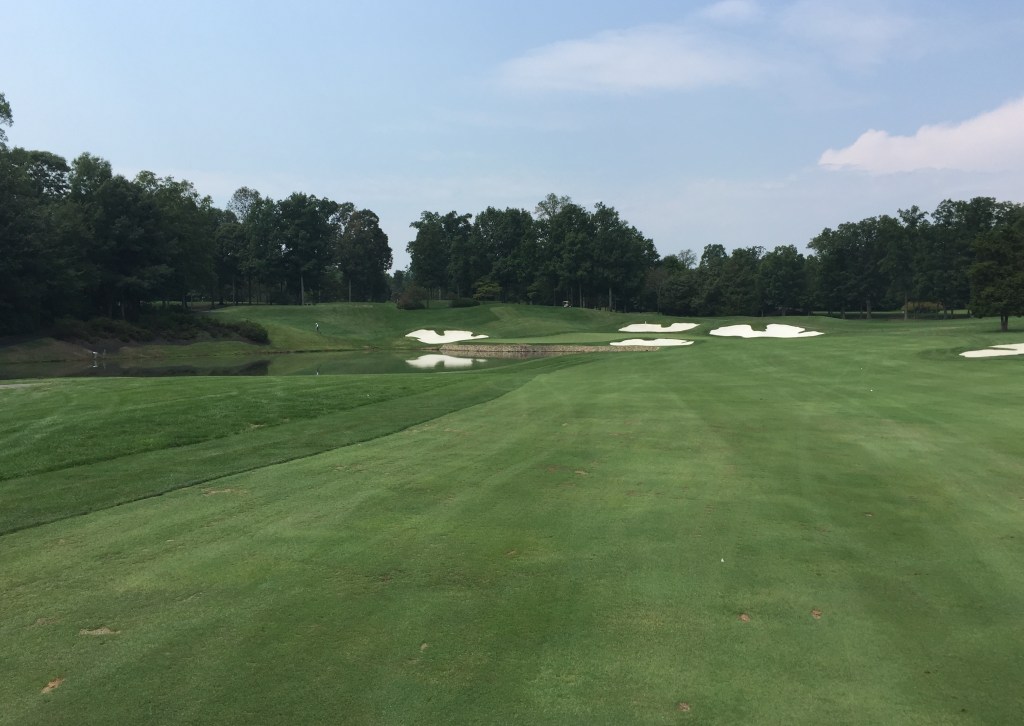 The exceptions to the above rule are Spyglass and a good portion of the eponymously named Robert Trent Jones Golf Club. This is a tough golf course with Lake Manassas coming into play on a few holes on the front and almost all of the back nine here. Above is the picturesque though brutally hard 11th. It’s a massive carry to a small peninsula that drops off steeply into the water on all sides. Conditioning on this course was immaculate and the clubhouse is regal. RTJ wanted his namesake club to be able to host majors and challenge the pros and he was successful (well at last in challenging the pros as in the four President’s Cups the course has hosted).