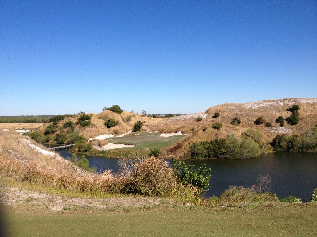 The Streamsong courses are beautiful, different, and the resort is really top-notch. The Red which I previewed here runs along the perimeter of the property while the Blue occupies the interior – kind of like the U.S. in reverse. You’re really splitting hairs comparing the two, but gun to my head I call it to the Red – weather was nicer and they were top-dressing when I played Blue.