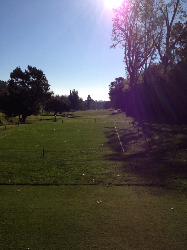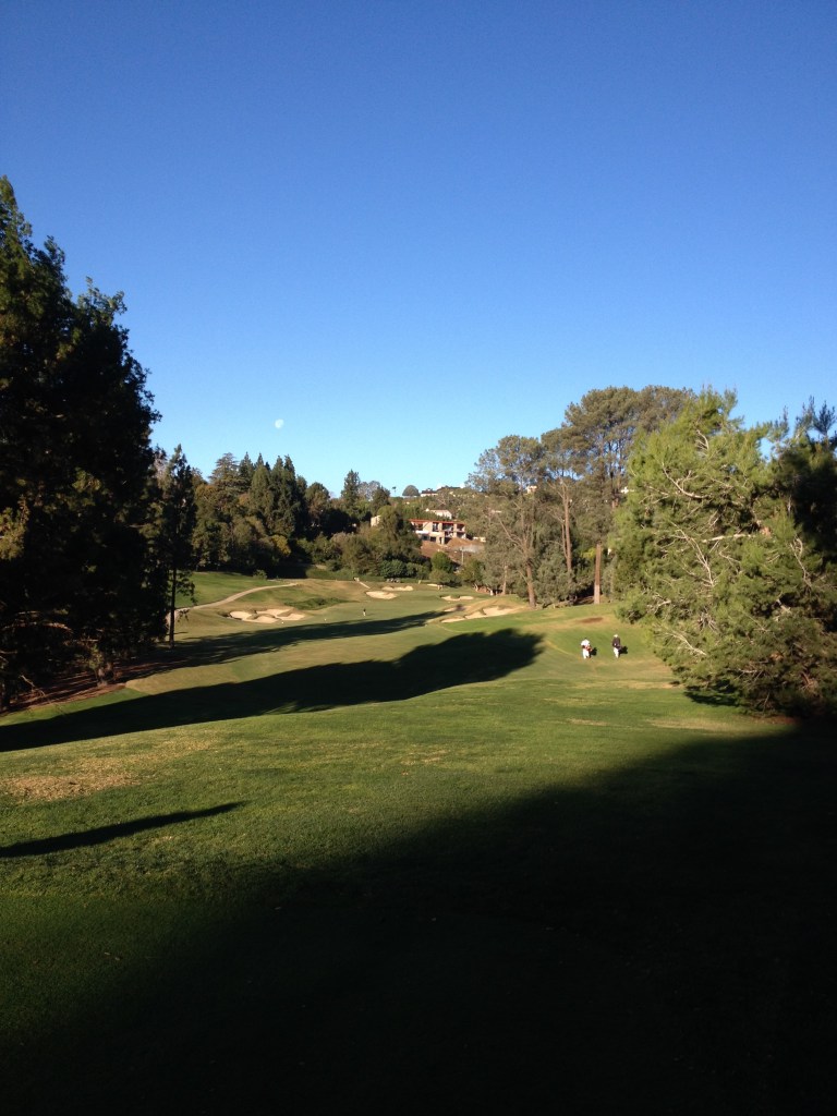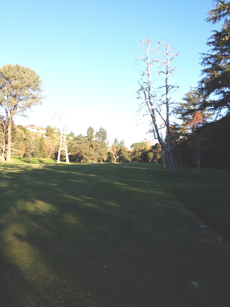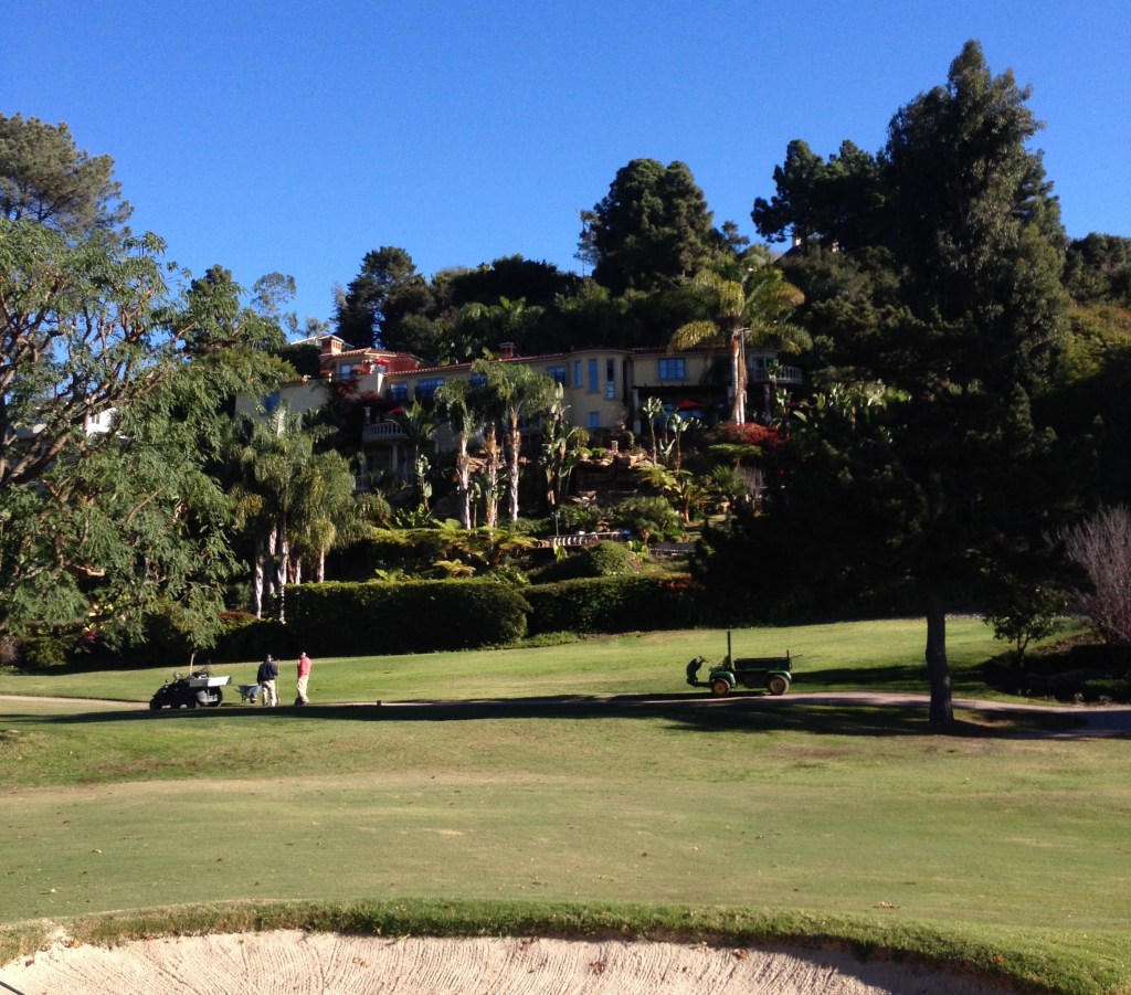 Next thing about Bel Air, you’re in Bel Air. As in Fresh Prince Uncle Phil’s Mansion Bel Air. There are houses along every hole here. Usually this is a deal killer for me in ranking a course, but did I mention you’re in Bel Air? People pay guides to drive around and gawk at these houses. Where most times you’re annoyed seeing houses hole after hole and wish the course would put up more shrubs to block them from the golf views, here you wish they would open more of it up so you could gawk into more backyards. I heard the Girls Gone Wild producer lives off one of the holes at Bel Air. Also, a lot of the houses are on steep hills well above the playing field as well, so they really don’t bug you. On 15 if you slice the ball like I have been known to do from time-to-time, you can smash it right through Albert Hitchcock’s house’s rear window. Get it? But honestly you can. That’s me with a bloody in front of the back of his old house.