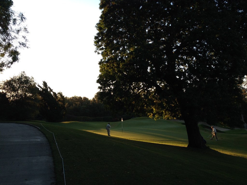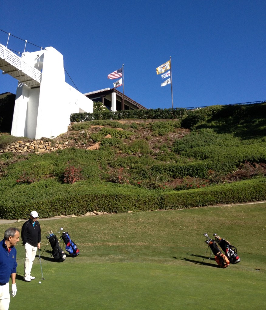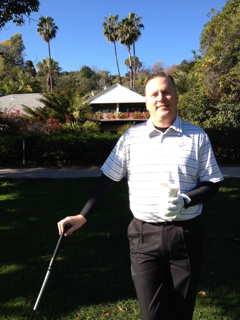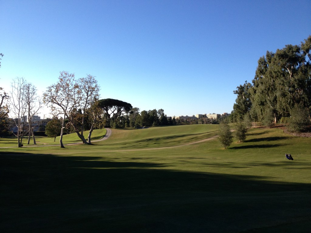 Next thing about Bel Air, you’re in Bel Air. As in Fresh Prince Uncle Phil’s Mansion Bel Air. There are houses along every hole here. Usually this is a deal killer for me in ranking a course, but did I mention you’re in Bel Air? People pay guides to drive around and gawk at these houses. Where most times you’re annoyed seeing houses hole after hole and wish the course would put up more shrubs to block them from the golf views, here you wish they would open more of it up so you could gawk into more backyards. I heard the Girls Gone Wild producer lives off one of the holes at Bel Air. Also, a lot of the houses are on steep hills well above the playing field as well, so they really don’t bug you. On 15 if you slice the ball like I have been known to do from time-to-time, you can smash it right through Albert Hitchcock’s house’s rear window. Get it? But honestly you can. That’s me with a bloody in front of the back of his old house.