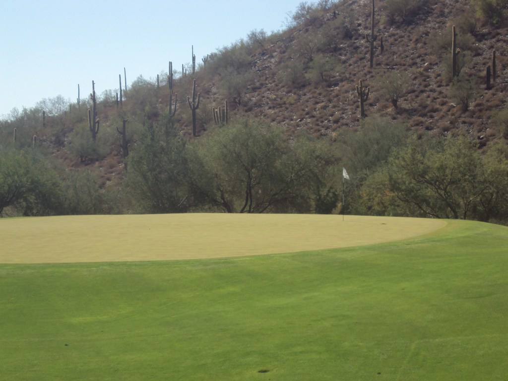 Quintero is now under Troon Management. Not sure if there are more homes there now and I assume they haven’t built the clubhouse yet as the site would’ve mentioned it. Put all of this aside and play the course. It is great! Quintero is a Rees Jones design and features some dramatic elevation changes – especially on the par threes. The ninth and sixth are my favorites on the course. Both are par threes. The 8th is a par five brute where you need to bang a drive as far as you can to cut almost perpendicular across some desert to a second fairway that is tight, tight, tight. Oh did I mention from the silver tees (6,401 yards) it’s 533 yards?