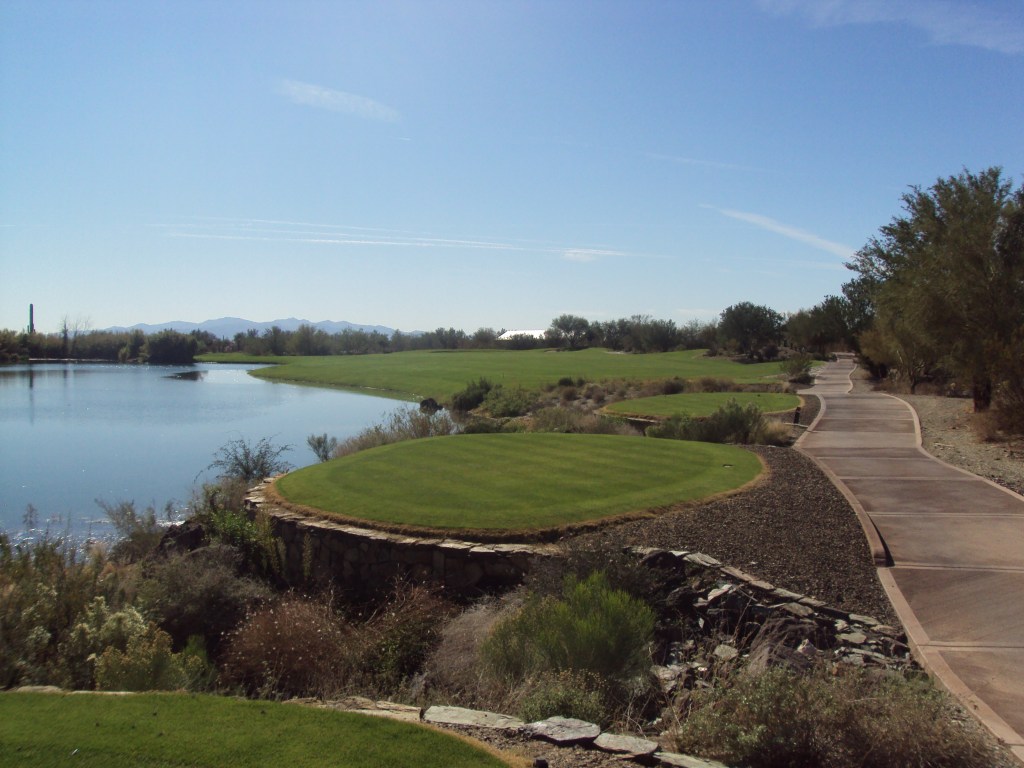 Played Quintero in 2011 with my buddies Ron and Johnny Cocktails. Quintero was a master-planned private golf-residential community a few exits north of nowhere in Peoria, AZ. I’m assuming the master plan wasn’t to get foreclosed on, but that’s what happened. When I played shortly after it was bought out of foreclosure and went public, there were still only a few homes on the property meaning the golf course had wide open vistas with nary a home to block the view. The clubhouse was temporary and the ride to the first tee required a gas stop and restroom break (kidding, kind of). I hear not much has changed.