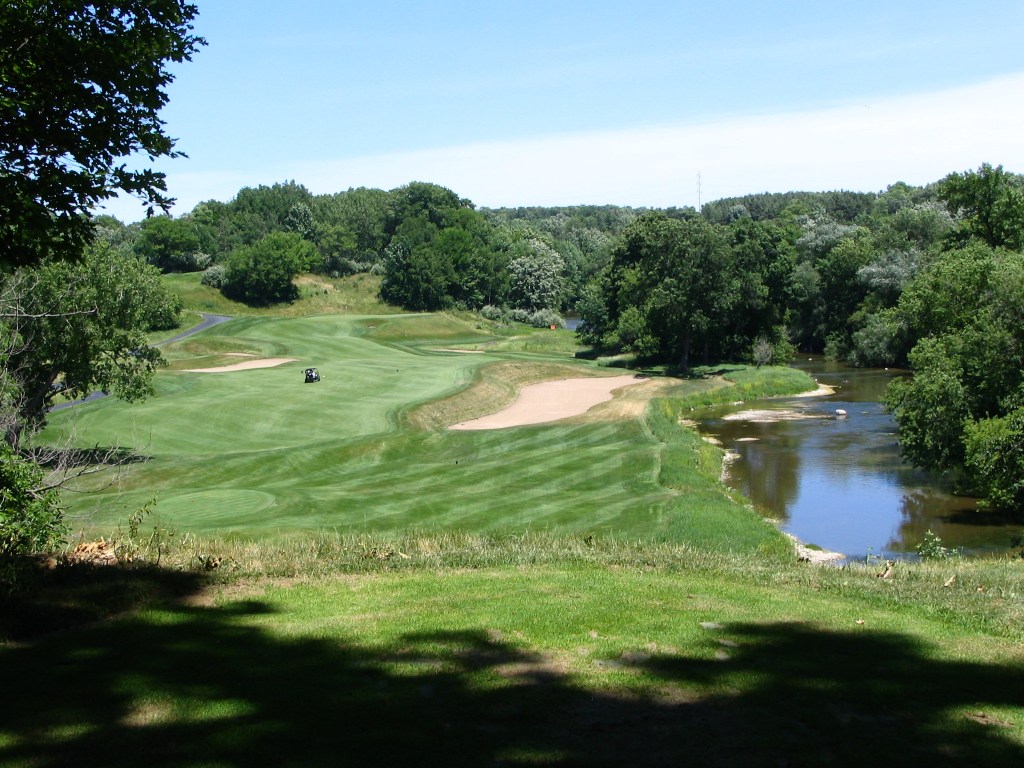 So the work trip that took me up here (to this day the only time I’ve been to the state of Wisconsin) took us to Madison, Milwaukee and Appleton and we stopped on the way back from Appleton at Kohler. My buddy Bill either didn’t want to play Whistling Straits because of the $$$ or we couldn’t get on so we played Blackwolf Run.