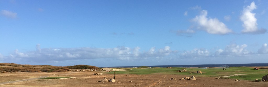 Went to Aruba in 2016 with my bride and daughter for a bonus day weekend. That means taking advantage of the Leap Day by taking a weekend trip somewhere. If you’re thinking of a golf trip to Aruba, don’t, unless you only want to play one round or one course. It’s a longer flight from the Northeast than the other islands and there is only one course here. The course is good, but not one to design a vaca around, and as you can see above the view of the famous lighthouse was killed by the scaffolding when I went.