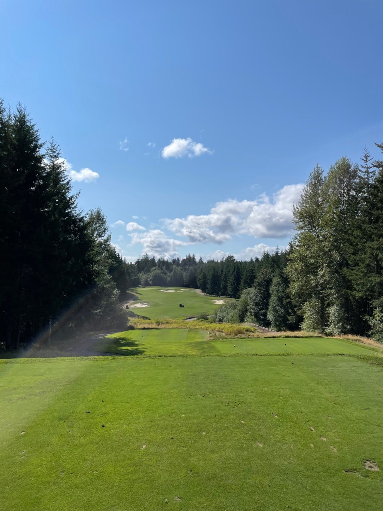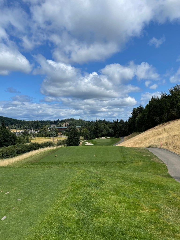 To the course. I talked about Salish Cliff’s first hole on the caption above. Two is a short-ish par-four (another par) and three is a l-o-n-g though slightly downhill par three (211 from the whites). I parred it and was only two over through 6 before I started leaking some serious oil. I’ll try to caption the photos but overall the course had a lot of great movement in it. The conditioning was solid. It was well wooded without making you feel claustrophobic. It was a 132 slope from the whites so it was no pushover. Nine and 18 were signatures. All in all definitely a good public course to play if you find yourself in Olympia. Otherwise, there are good options much closer to Seattle-Tacoma and if you have the private chops, there are some really good privates in the area – TPC Snoqualmie and Sahalee of the ones I’ve played.