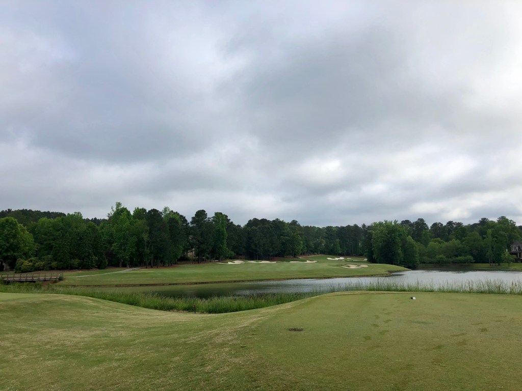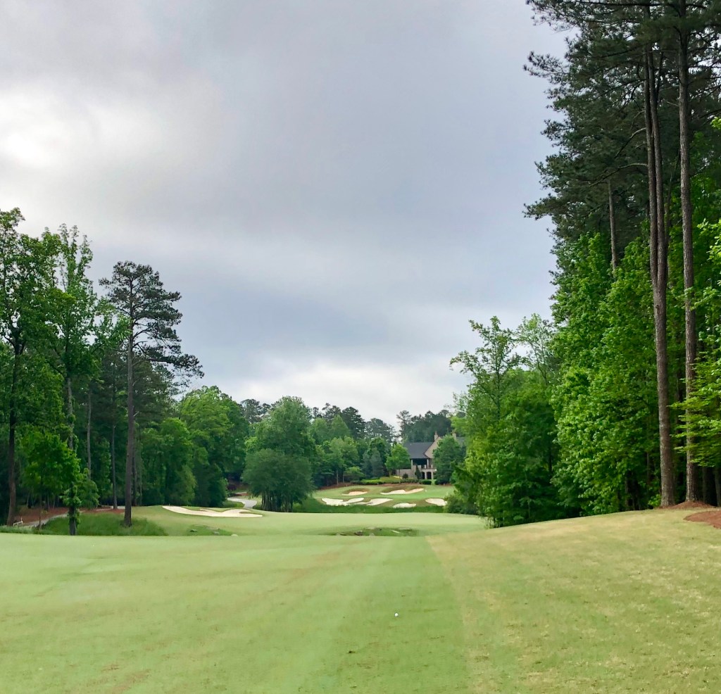 We played at the crack-of-Christ so we flew around this course. The conditioning was top notch. We had après golf drinks in the club house though we all had flights so couldn’t linger as long as we wanted. The club is in a super high-end residential community that is home to some multi-million dollar mansions with some Atlanta-area athletes and other local glitterati as residents. The homes weren’t too intrusive and didn’t even seem to exist on the back nine.