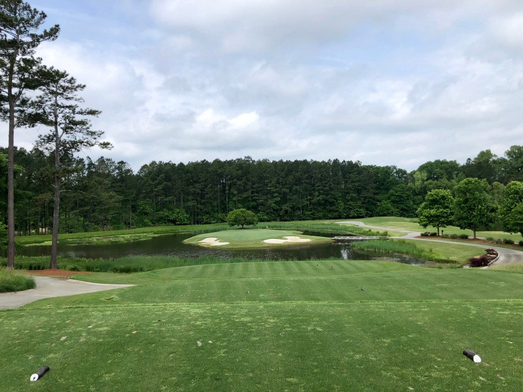 Played the River Club outside of Atlanta in 2019 with some work buddies. This was kind of a sneaky good course that flies under the radar a bit in the golf-rich Atlanta area (at least golf-rich as far as top private clubs go). The top privates to get on in the area are a who’s-who (or what’s-what) of top 100 golf courses: East Lake, Atlanta Athletic, Peachtree (there had to be a peach tree-named course in Atlanta of course – more on that later), Atlanta CC and of course a little club called Augusta National a mere two hours or so away. Anything not on that brand-name list flies under the radar.