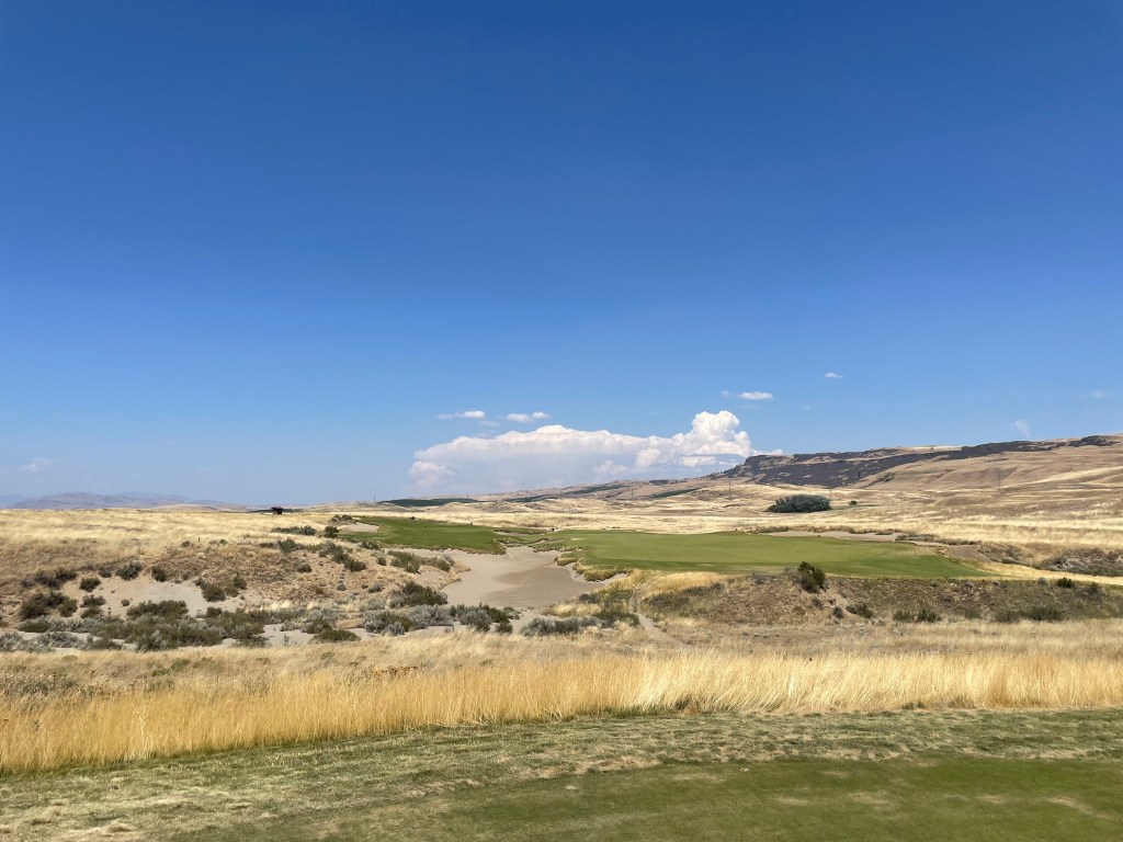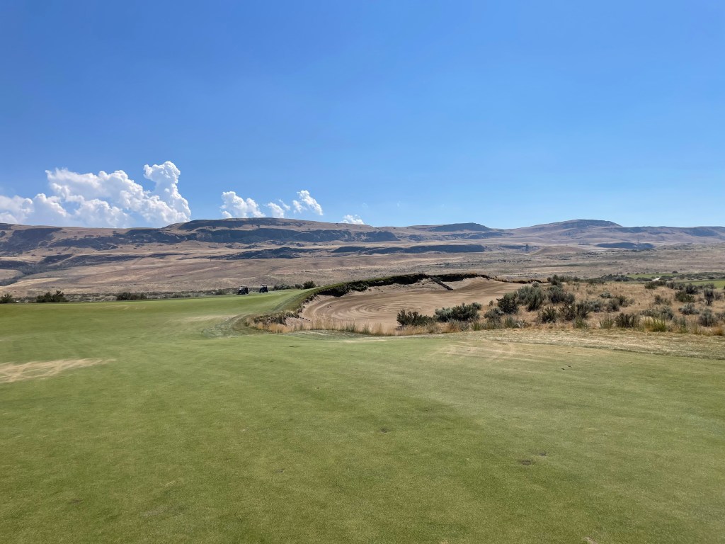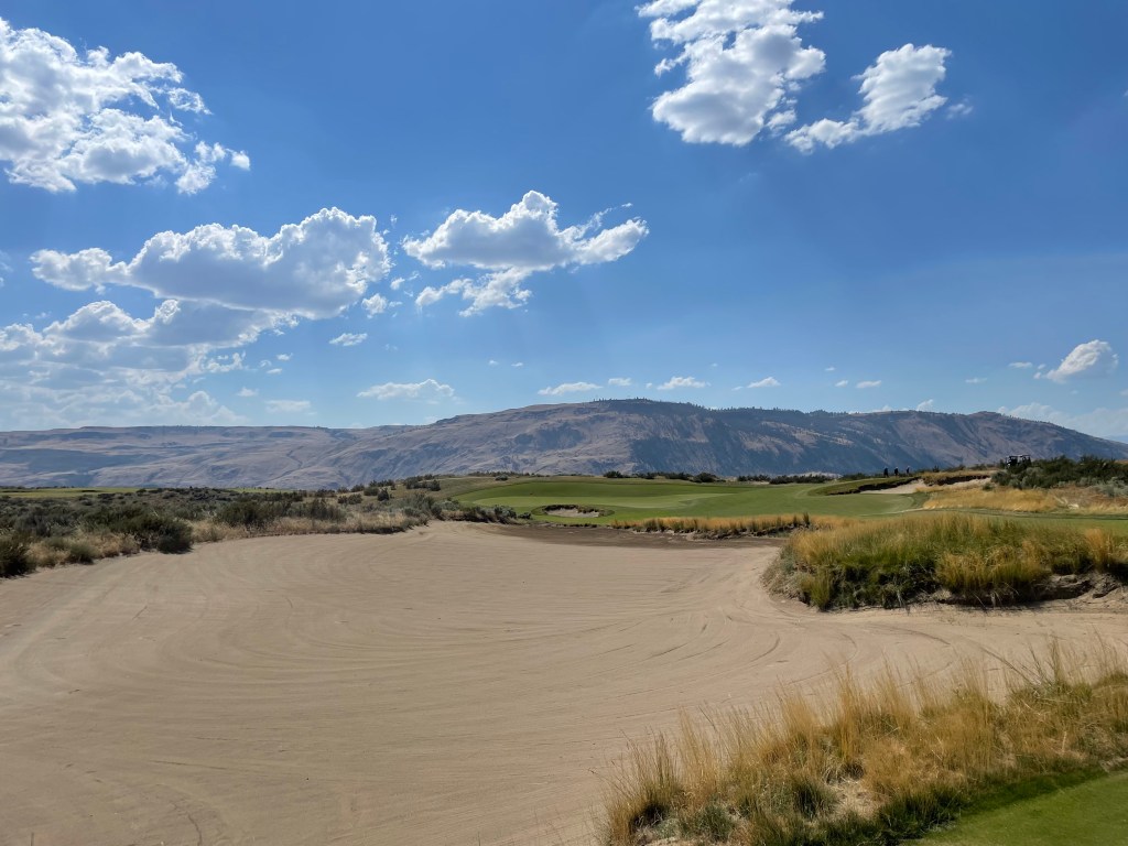 August 2022 – Bandon Dunes opened in 1999 with the hope that if you build a great golf course (resort) in a super remote location, golfers will figure out a way to get there. Well the success of the original Bandon Dunes course begot four additional courses (and a short course), which begot Streamsong in Florida which begot Cabot in Nova Scotia which begot Sand Valley in Wisconsin and today you have Gamble Sands. Gamble is closer to nowhere in central Washington than it is to Spokane or Seattle. The Gebbers family carved out about 1% of their apple farm to dedicate to building the remotest of remote golf courses and they brought in the architect from the original Bandon Dunes course, David McLay Kidd, to design it. They built cabins for overnight stays and are in the process of designing a second course as we speak.