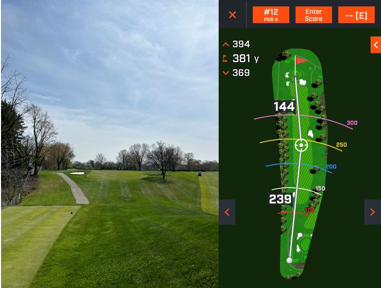 Twelfth Hole: OB all along the left. Blind tee shot but straight. Number 6 handicap. First double of the day. Luckily pushed this with the stroke and the back three hole match was even but won two ways.