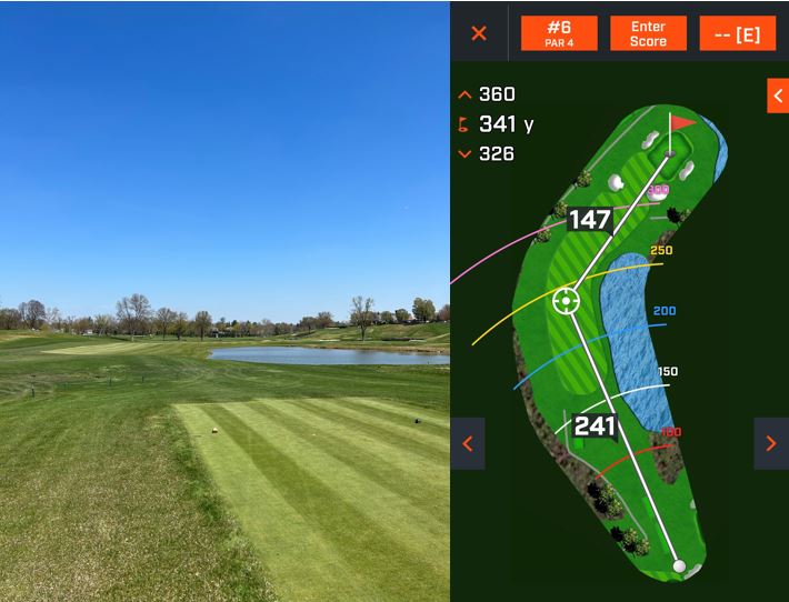 Sixth hole: Short, bending par-four around the pond. You won’t get in trouble if you miss left but will make approach longer. Finally off the bogey train with a nice par here. Stroked and we won the first six hole match.