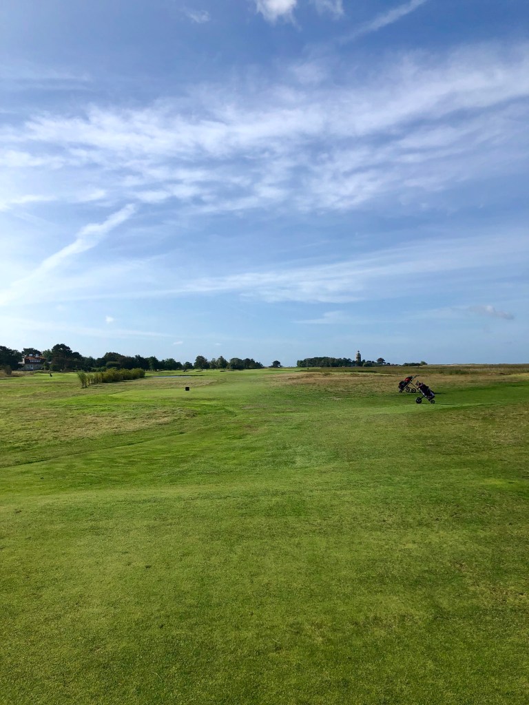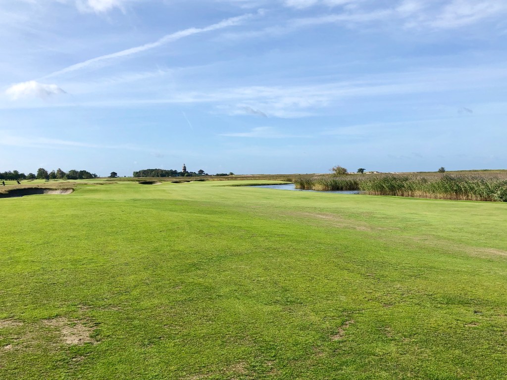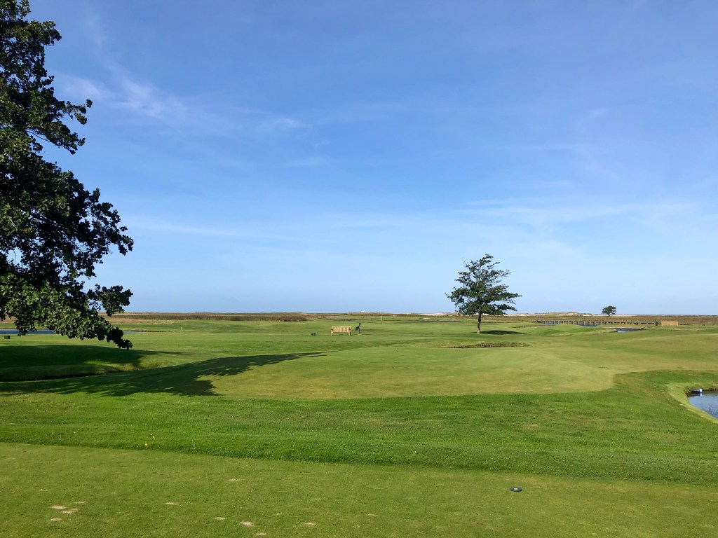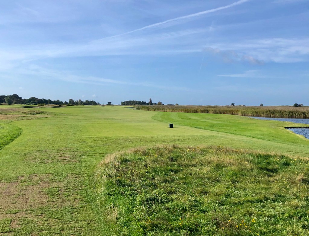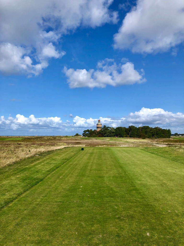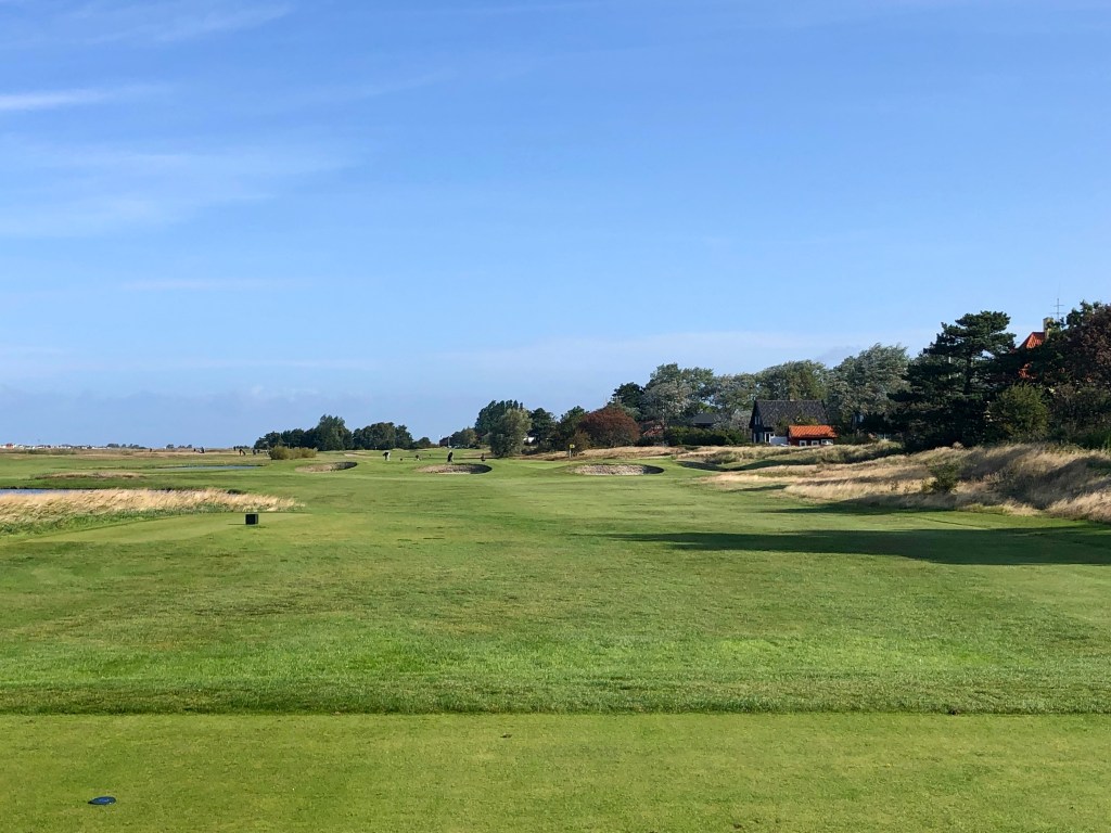Played Falsterbo after a Baltic Sea cruise we took in 2019. More on that later. Immediately to the course then. I really liked Falsterbo. It sits at the southernmost tip of Sweden on a little spit of land dangling into the Baltic Sea. It is a true links course, it is flat and it is within a nature reserve called Flommen. This is a hot spot for birdwatchers – just about all of whom are oblivious to golfers trying to tee off or hit their approach shots on Falsterbo. I suggest if you play here, you hit away. If you get close to hitting them though you have to yell watch out in Swedish (they don’t know what FORE means). The way you say “watch out” is: “Fan ta dig.”