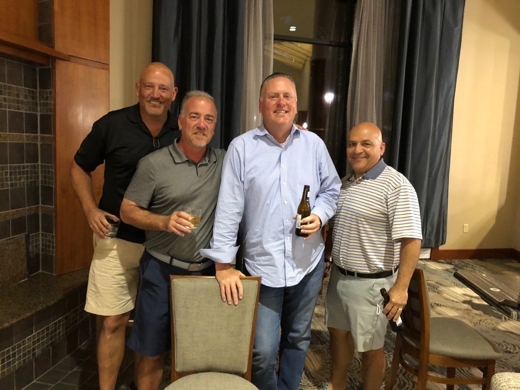 We played this with the same group of buddies as Cabot but two had to back out over the Vid. Luckily, my buddy Vahan lives up there in the summer and flew in our two buddies Nick and Zeke and they hung and played with us. It was great seeing those guys years later. One of the last times I saw those guys was Oakland Hills over 15-years earlier. Take a look at us then and now (below from the Grand Traverse).