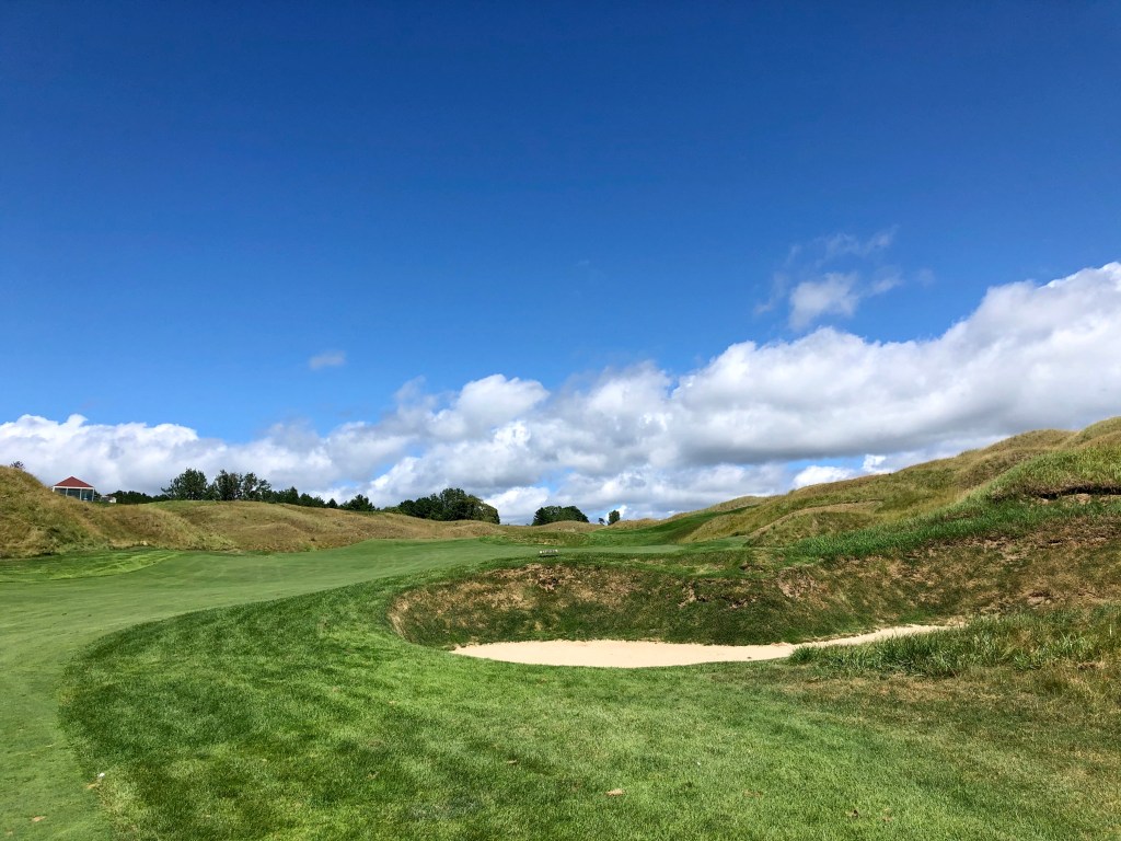 Before there was Bandon and Cabot, there was Arcadia Bluffs. Remote. Waterfront. Cabins and a lodge on property. Linksy. And now there’s a second course (though there are more options nearby here than at Bandon and Cabot). Played Arcadia Bluffs in 2020. We stayed here one of the nights and at the Grand Traverse about 1.5 hours away for the others. The pandemic didn’t really affect the trip much. Tables were more spaced out for meals and you couldn’t sit at the bar. There was the mask routine in common areas, but otherwise was just great to get out.