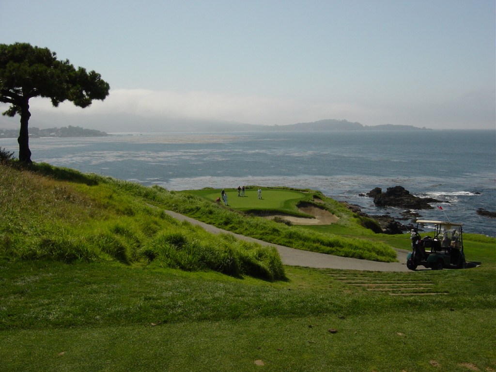 September 2002: Pebble Beach. Played in 2002. According to my ranking criteria, Pebble is as good as it gets. I read some reviews that say it’s 7 great holes and a bucket of turds. Disagree. Pebble plays like a great novel. It brings you slowly into the story. A gentle opener. A reach-able par five for even the most meager of golfers. Then a tease on the third tee, until you turn the corner and POW! For the next three holes you get a glimpse of the Pacific leading to the 6th and one of golf’s most underrated holes. The 7th through 10th are unbelievable then the course takes you back through the inland holes until 17 and POW (again). Eighteen is the best finisher in golf. Add the US Open and the multitude of computer golf games that feature it and Pebble is as memorable as memorable gets.