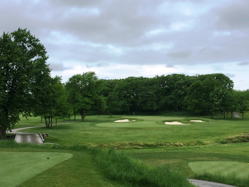 The North course here, in and of itself, is a great parkland style course with outstanding conditioning, beautiful rolling hills and water features on several holes. Unlike some courses (TPC Sawgrass comes to mind) where the water hazards punch you in the face, here they complement and never overwhelm the design. Whether it’s a meandering creek that comes into play on five holes or a pond off the ninth green and tenth tee, water is a strategic element of playing the hole not THE entirety of the hole’s features. Three and fourteen are my favorite holes (both pictured below). On three you have to cross the creek on your approach and on 14 you need to avoid it on the drive and approach. The course has championship golf pedigree, with Pennsylvania’s own Jim Furyk winning the 2003 US Open here. It really is a great course.