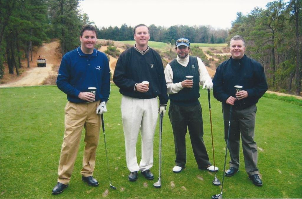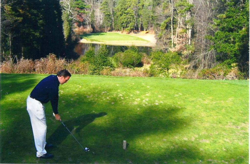 So our buddy Billy was a member here and would take my various golf-playing family members out every year for dinner in the clubhouse and Eagles Monday night football in the cabins. Of course, the Pièce de résistance was a round on Tuesday morning. Billy passed a few years ago and his ashes were sprinkled on the fourth hole. Billy was a hoot – a huge deadhead. I had the joy of sharing a room during one of our other golf trips with him once and discovered he had what we called, sleep tourettes. He would Mother F*** everything and everyone while sound asleep.
