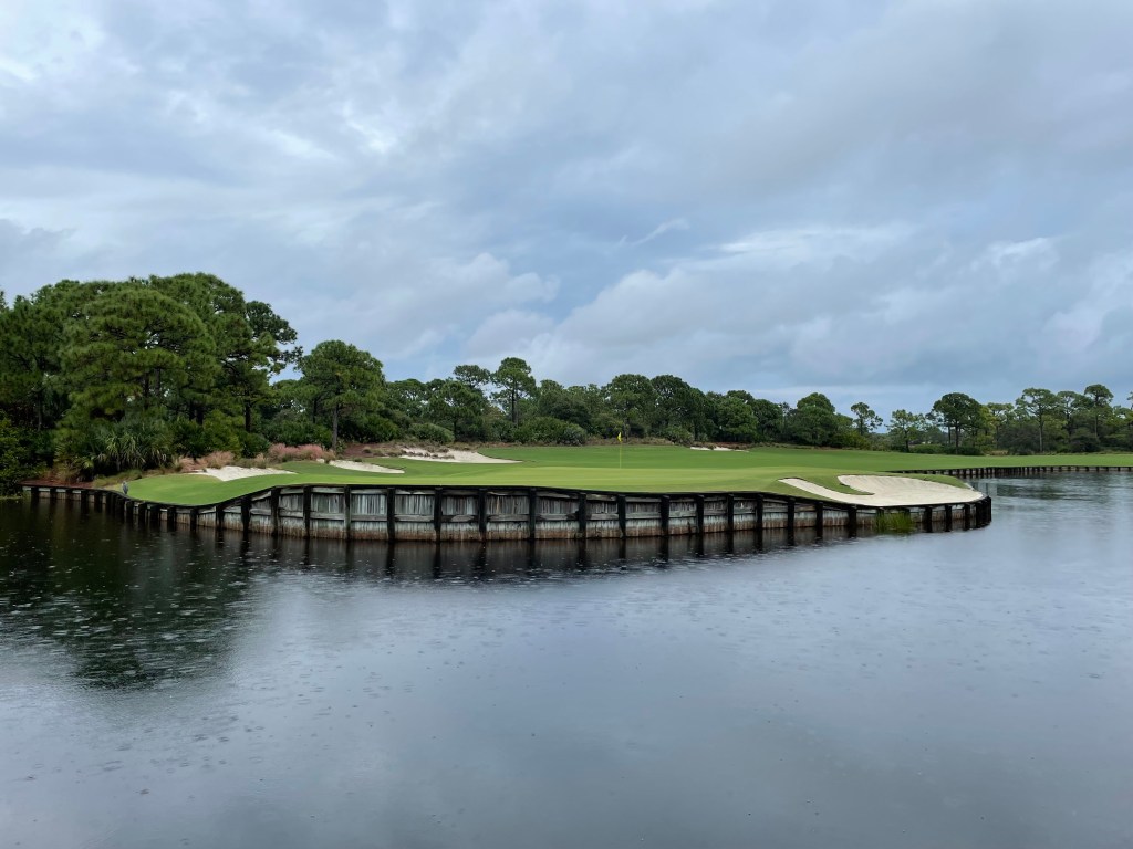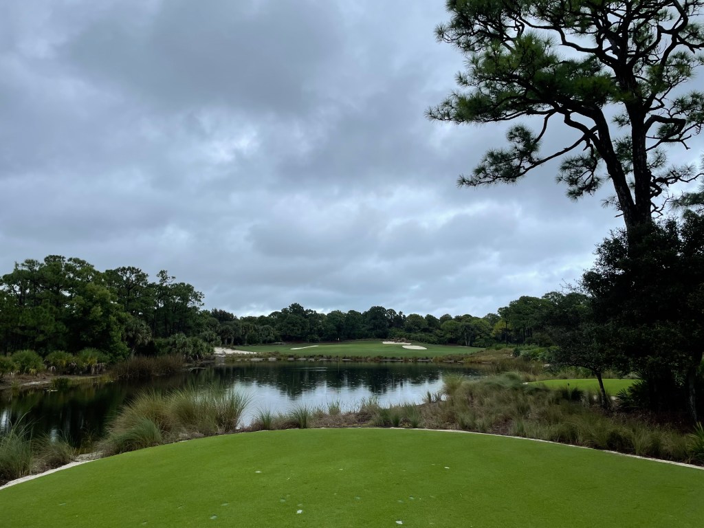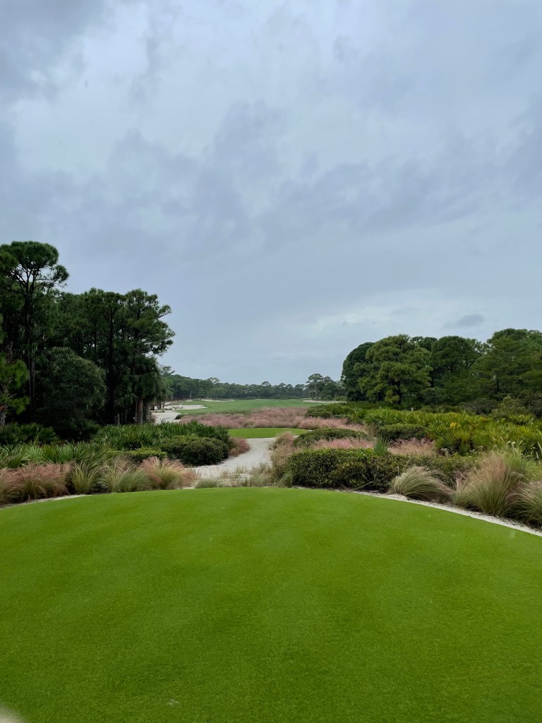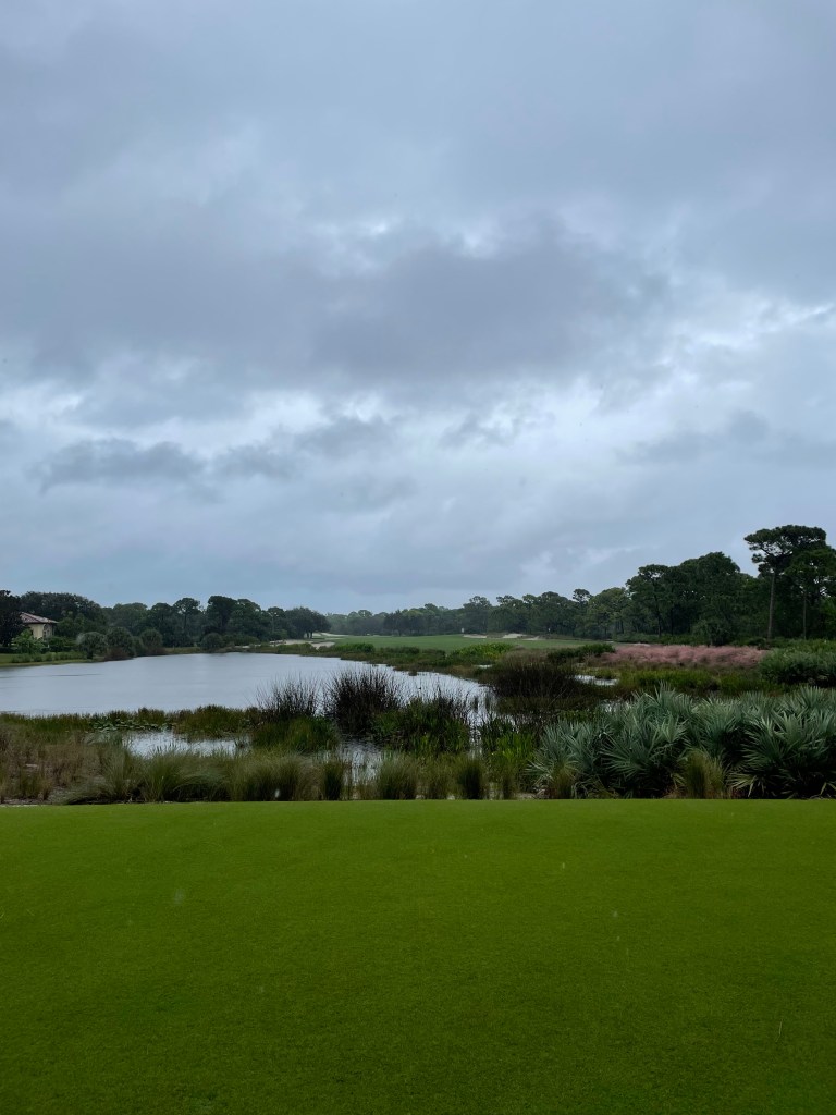 The Bear’s Club is an ultra-exclusive private club in Jupiter, FL designed by Jack Nicklaus and where he and other golf notables and sports celebrities (think Michael Jordan) reside. We just played here in November 2021. As you see in the water above, it was raining pretty good when we played The Bear’s Club. We woke up and it was pouring. Two of the guys playing pushed up their flights assuming we wouldn’t be able to get the round in. We pushed back our tee time until noonish (but wouldn’t have had to do this as we ended up the only ones on the course). Got there, grabbed breakfast and decided to try and play but only got nine holes in.