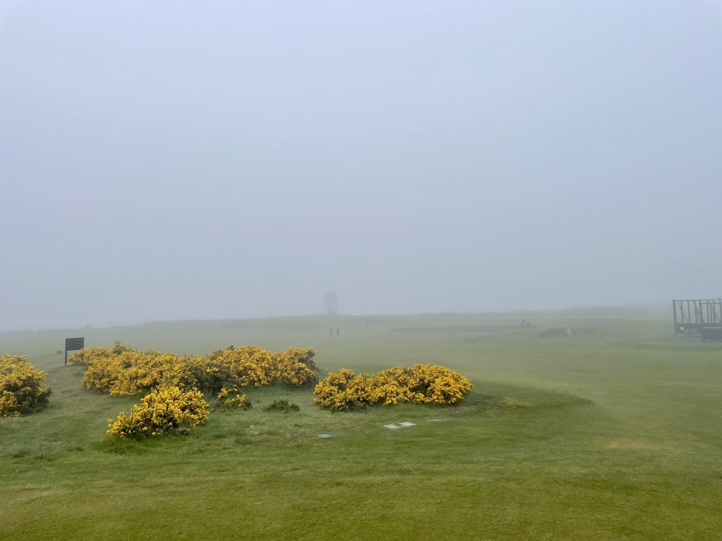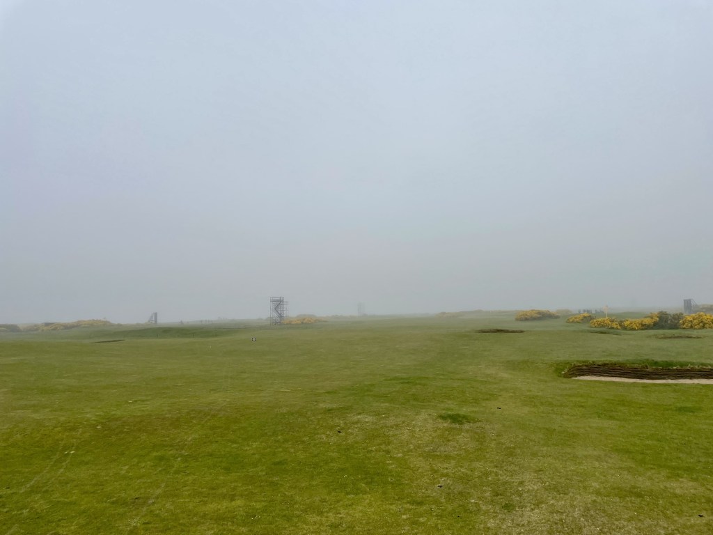 It was very foggy when we played. You’ll see that in some of the photos below. We visited the town and course Sunday when we got in and you’ll see some of the photos are bright and sunny. That was from Sunday. That’s the great thing about the Old Course, it’s closed Sundays and the public can walk around the course unfettered.