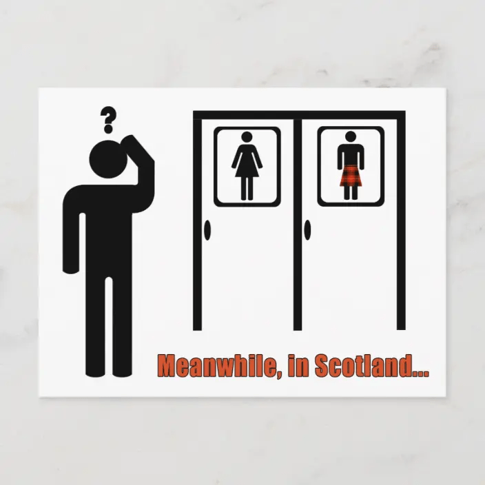 - Kilt-wearing Scottish men get paralysis with the bathroom symbols. I guess.