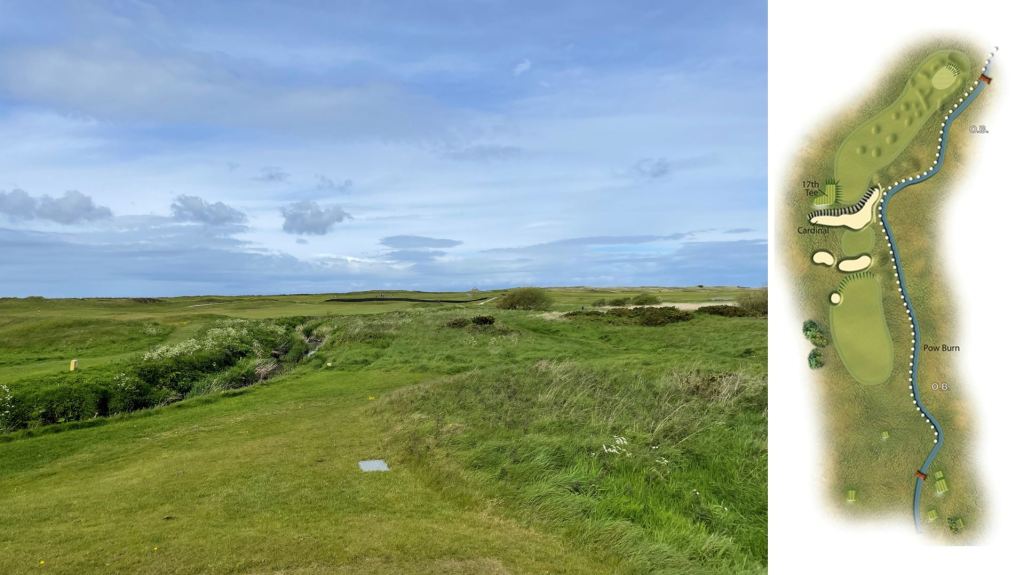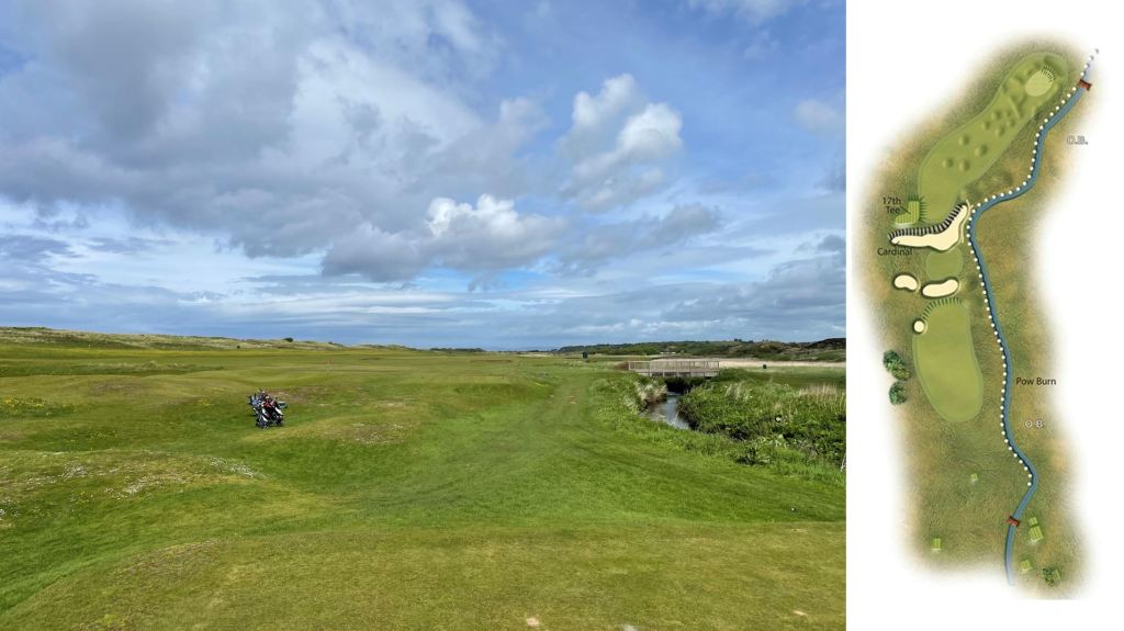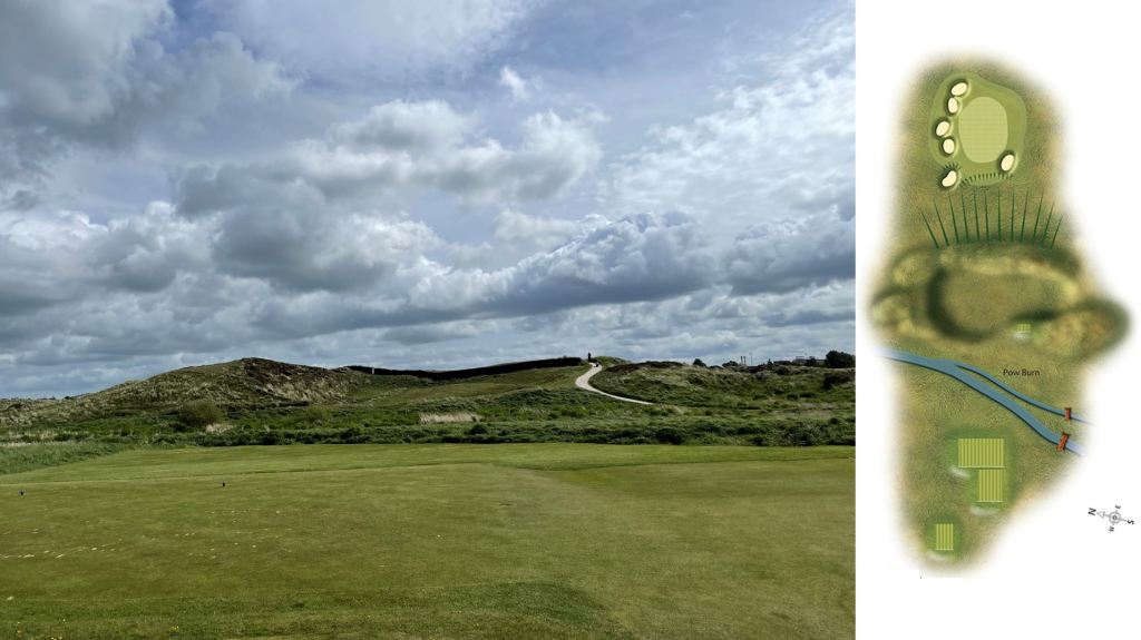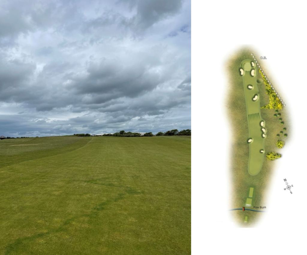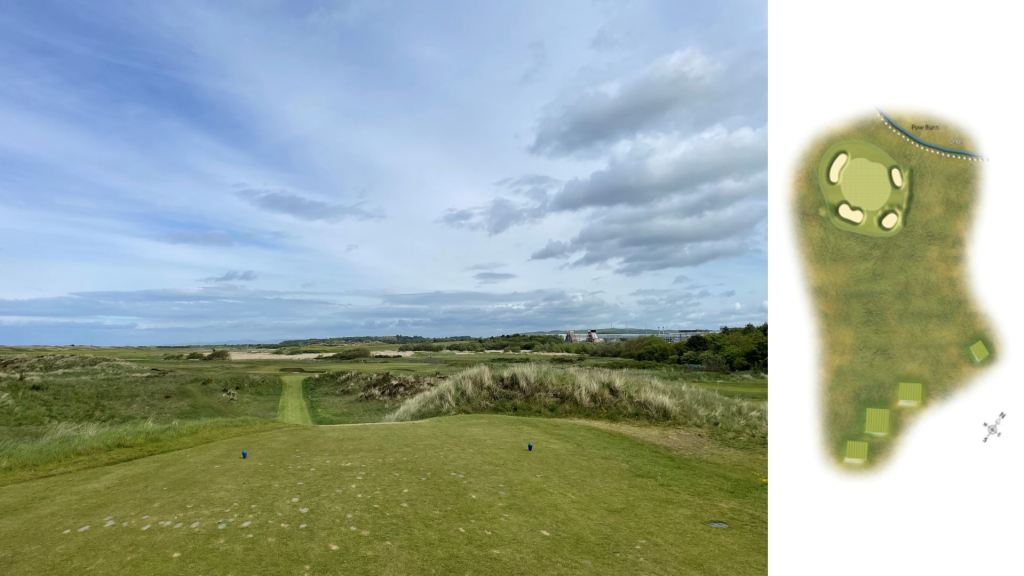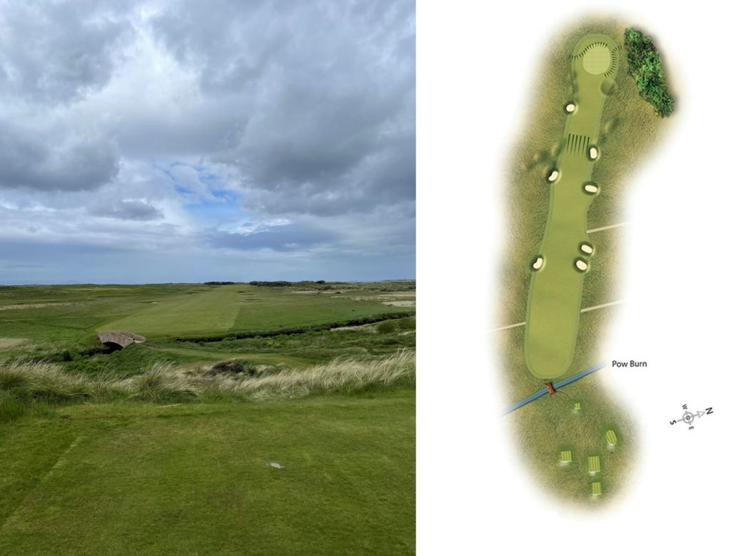 As mentioned above, I took a photo on three of the fourth tee so I don’t have a photo. Like your approach on three, the hole hugs the Pow Burn. I faded my drive around the bunker, hit a good shot in and parred here. I suggest you play the hole just like that.