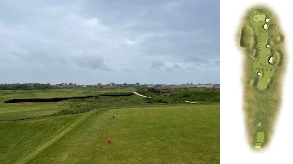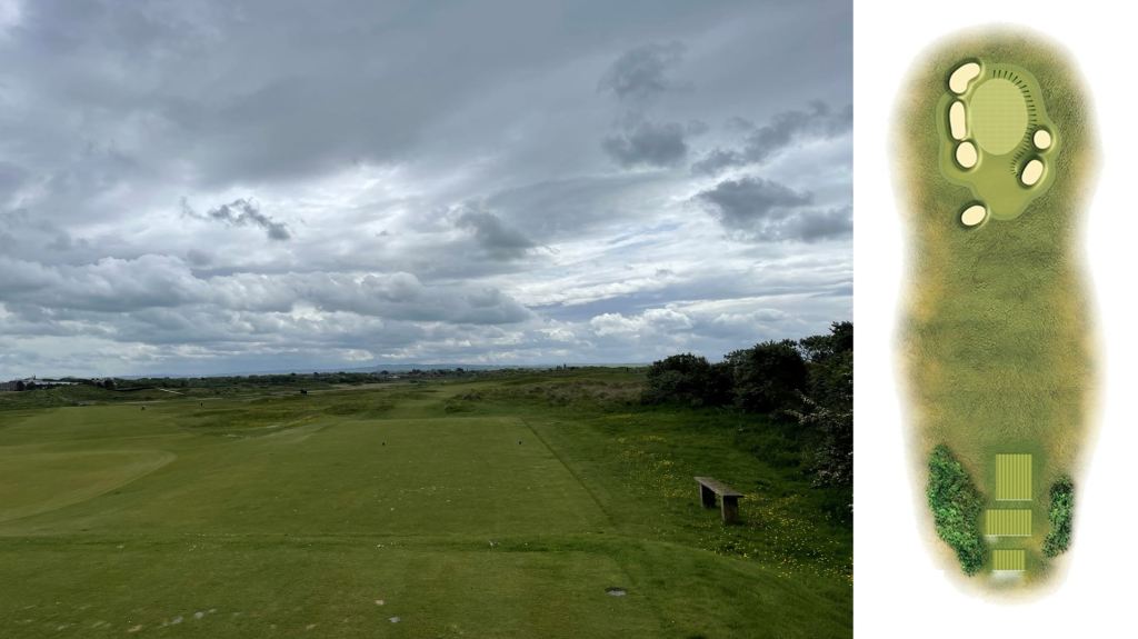 The second is a well protected par three, about 160 yards. This is the #17 handicap and features a pretty good-sized green which is relatively flat. There are only three par threes on Prestwick and each are VERY different. While not a hole that will make your top par threes of all time, two is a nice, normal golf hole on a course full of Abby Normal golf holes…