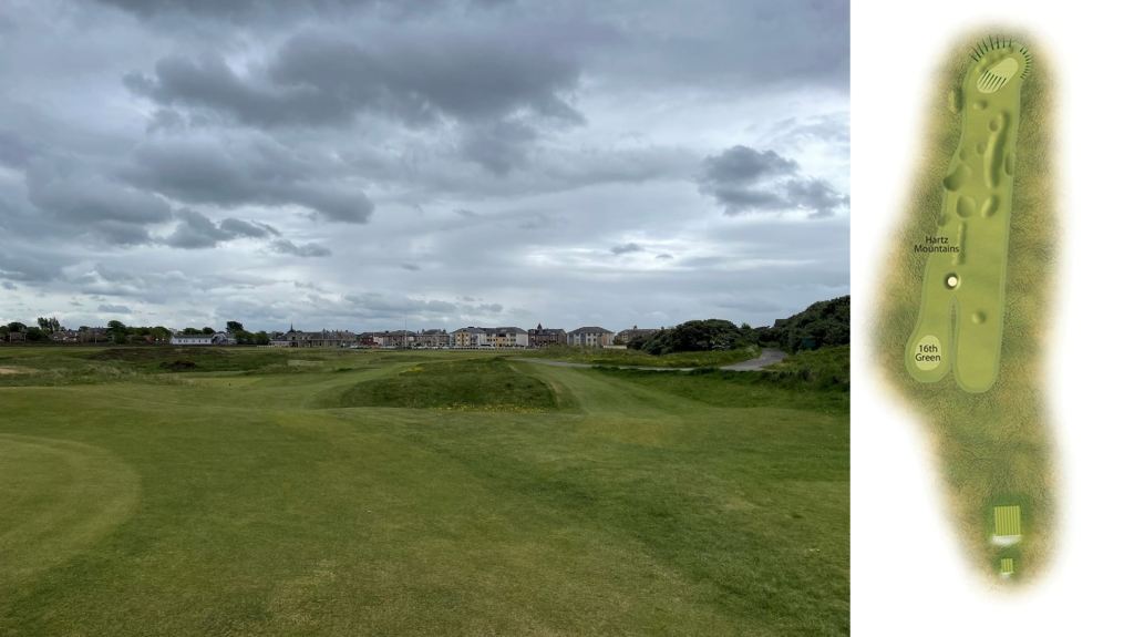 The thirteenth is the final l-o-n-g hole you play on Prestwick. It is about 450 yards from the reds. My buddy’s approach was on the 16th green. I played this hole relatively well but took three to get on and a 3 putt for double. There are no bunkers to speak of on 13 but length gives it its bite.
