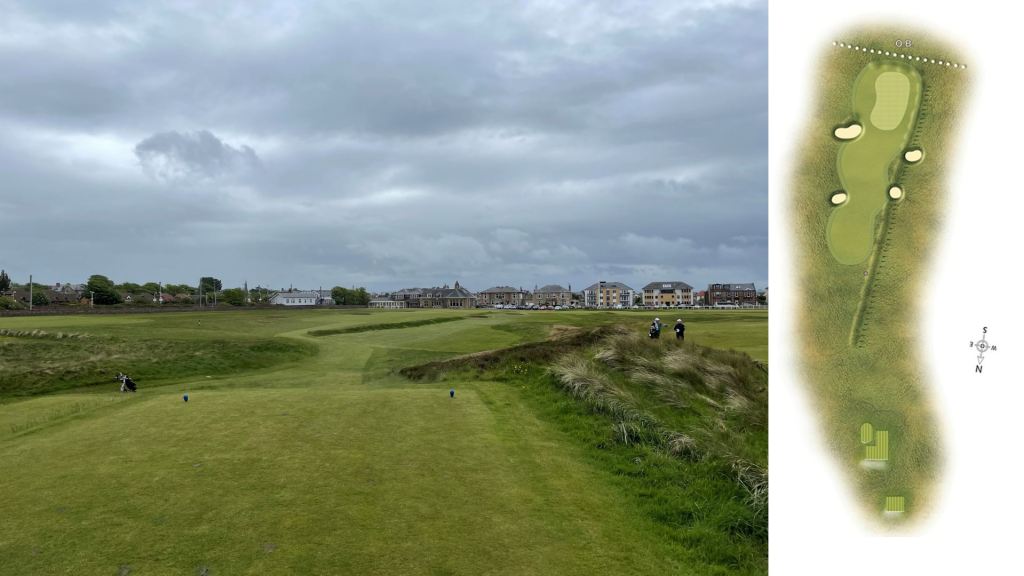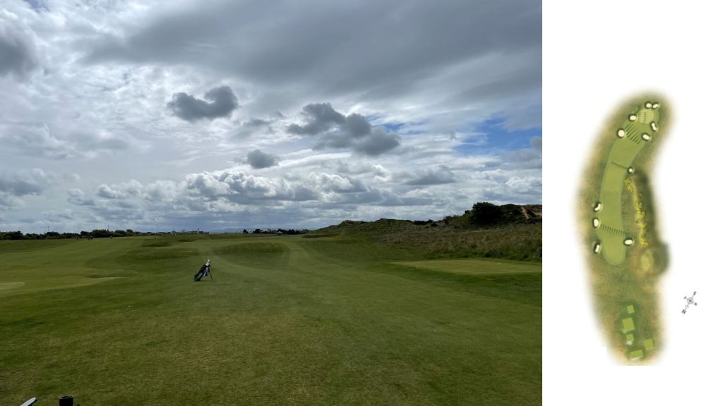 One of the primary ranking factors of a golf course in my mind is the uniqueness of golf holes. This counts both as unique from other courses and unique from each other. Prestwick is the most unique course I’ve ever played and most of the holes are also unique from each other – save seven and eight. You still want to thread your drive here, but a miss left gets you in the 9th fairway. The green is similarly protected as the 7th. You’re as far away from the clubhouse here as you’ll be but a nice drive and solid approach shot (keeping it straight) will make par/bogey here pretty easy. I bogeyed and my buddy Mike parred.