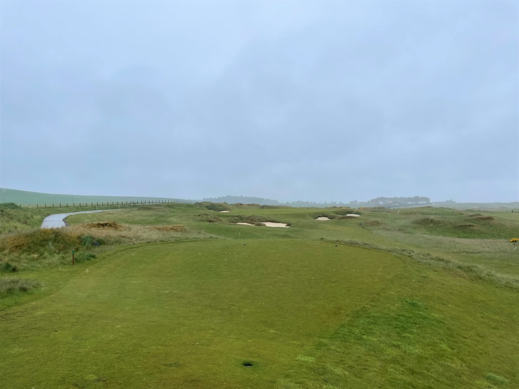 May 2022 – The Castle Course is the seventh and latest course to be opened of the St. Andrew’s offerings. It’s about a mile or so down the road from the town and features a vastly different golf experience than the other courses at St. Andrews – similar to the later offerings at Pinehurst versus the original courses that are on property. It gets some pretty critical press from the design nerds including a zero rating from Tom Doak. While I respect Doak, I don’t agree with him here and whether they softened some of the features since he reviewed it or the rain we played in softened it up, this played fair and definitely makes my top 100. Sure the greens were tricky but that made it pretty unique to the other courses here. There is a great review that sums up my overall take on the Castle Course right here. Make sure you also click through to the article on Doak and Kidd burying the hatchet. BTW that’s the only other place where I see the golf architectural fans referred to as nerds!